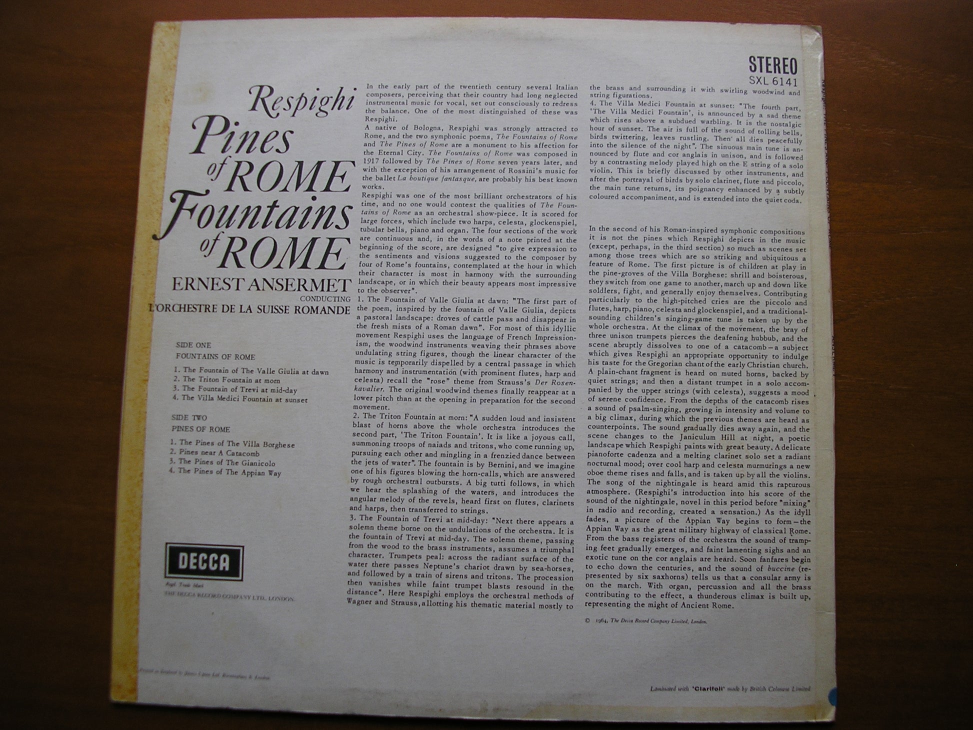SXL 6141 RESPIGHI: PINES OF ROME / FOUNTAINS OF ROME ERNEST ANSERMET / SUISSE ROMANDE ORCHESTRA