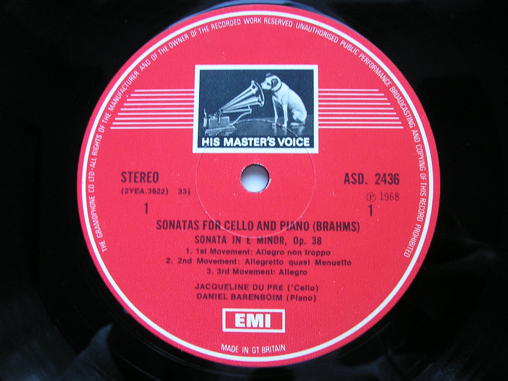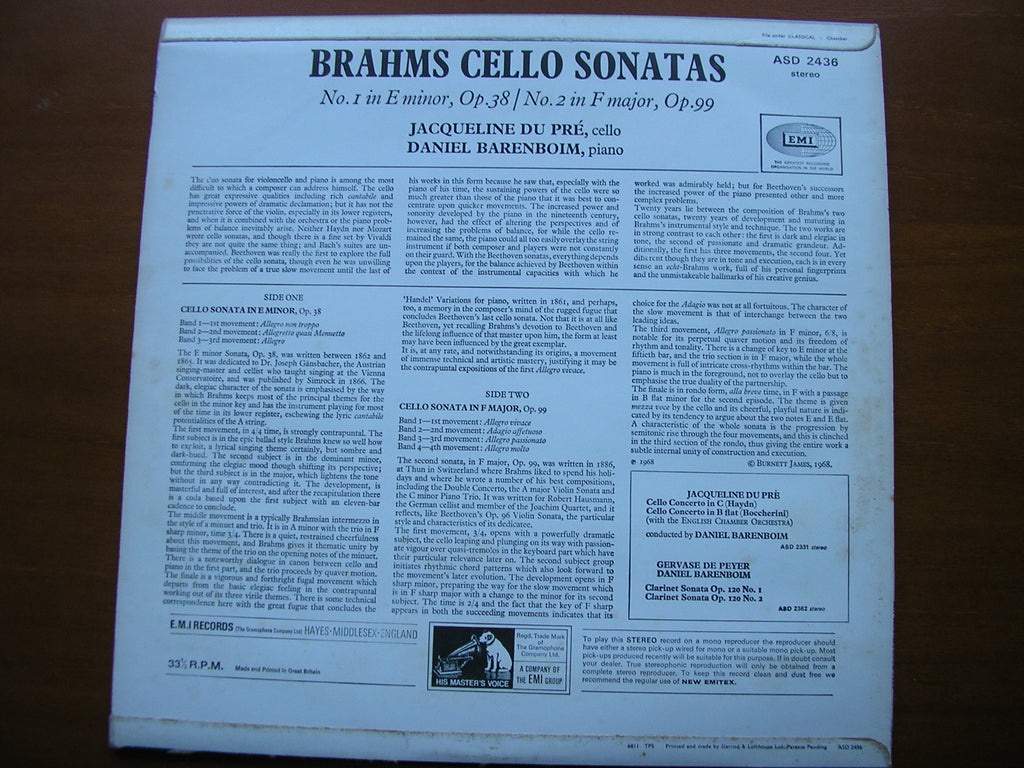 ASD 2436 BRAHMS: CELLO SONATAS Nos. 1 & 2 JACQUELINE DU PRE / DANIEL BARENBOIM