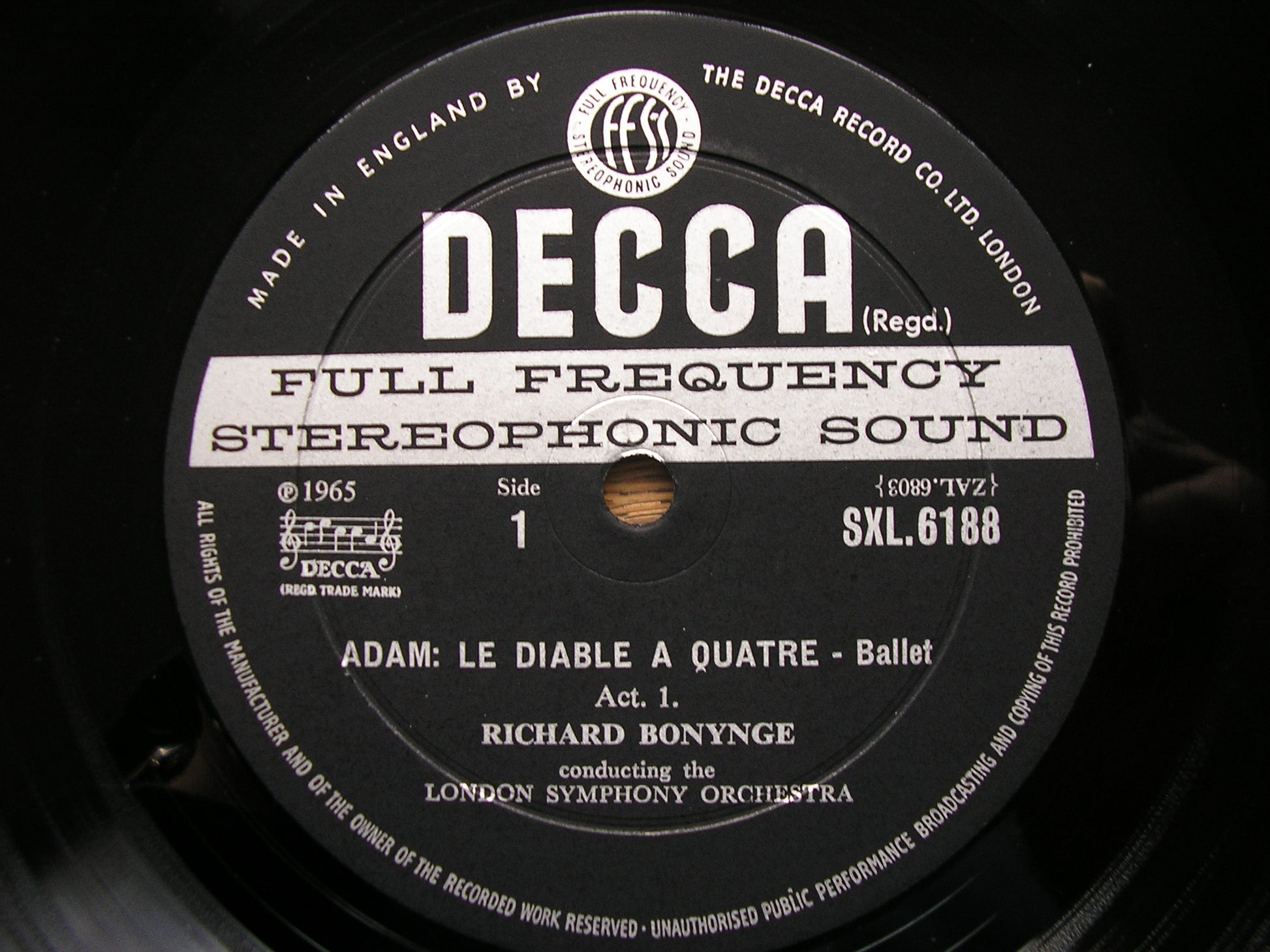 SXL 6188  ADAM: LE DIABLE A QUATRE  RICHARD BONYNGE / LONDON SYMPHONY ORCHESTRA