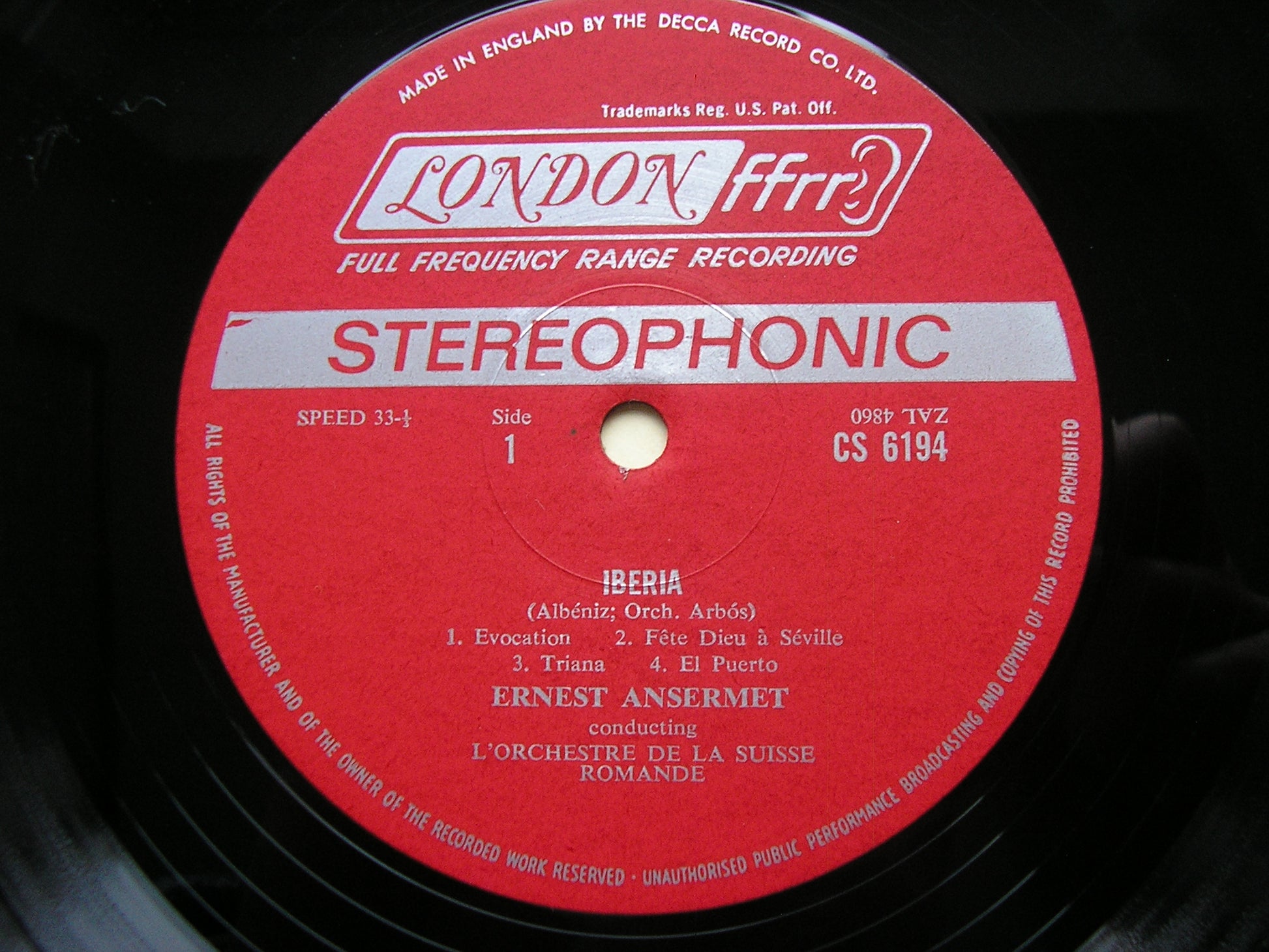 CS 6194  ALBENIZ: IBERIA / TURINA: DANZAS FANTASTICAS     ERNEST ANSERMET / PARIS CONSERVATOIRE ORCHESTRA