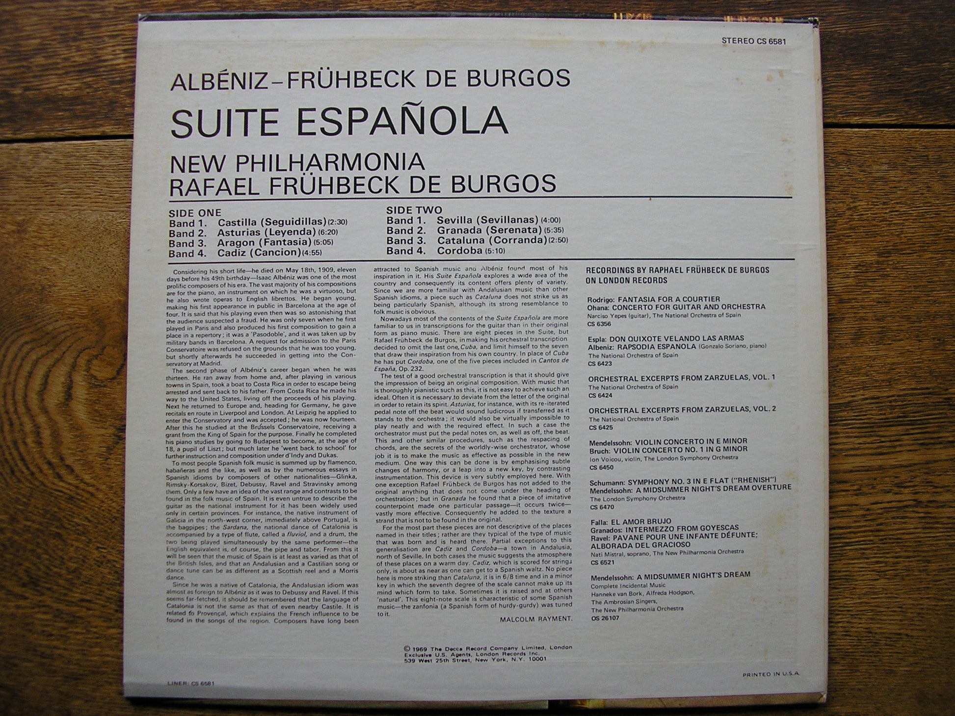 CS 6581  ALBENIZ: SUITE ESPANOLA   RAFAEL FRUHBECK DE BURGOS / NEW PHILHARMONIA ORCHESTRA