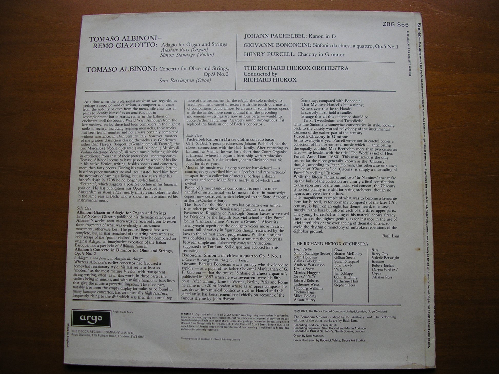 ZRG 866  ALBINONI / BONONCINI / PACHELBEL / PURCELL:  MUSIC OF THE BAROQUE PERIOD