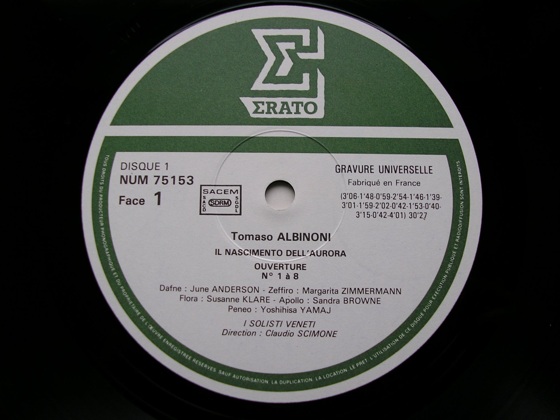 ALBINONI: IL NASCIMENTO DELL'AURORA SOLOISTS / I SOLOISTI DI VENETI / SCIMONE 2LP NUM 751522