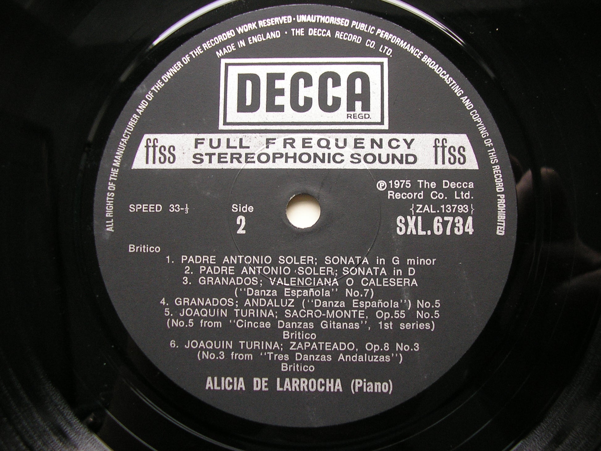 SXL 6734  ALBENIZ / SOLER / GRANADOS / TURINA: PIANO PIECES     ALICIA DE LARROCHA