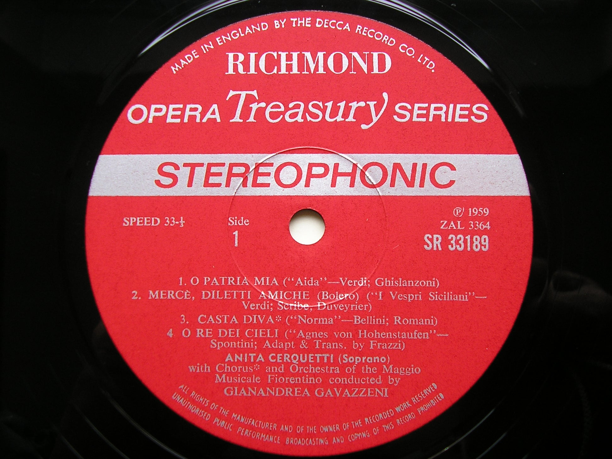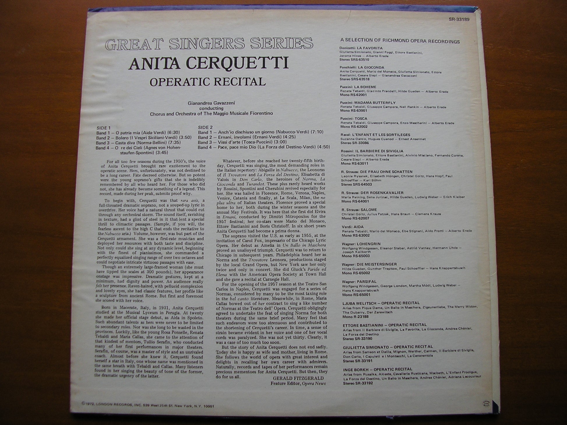 ANITA CERQUETTI SINGS OPERATIC ARIAS: VERDI / BELLINI / SPONTINI / PUCCINI CERQUETTI / MMF / GAVAZZENI SR 33189