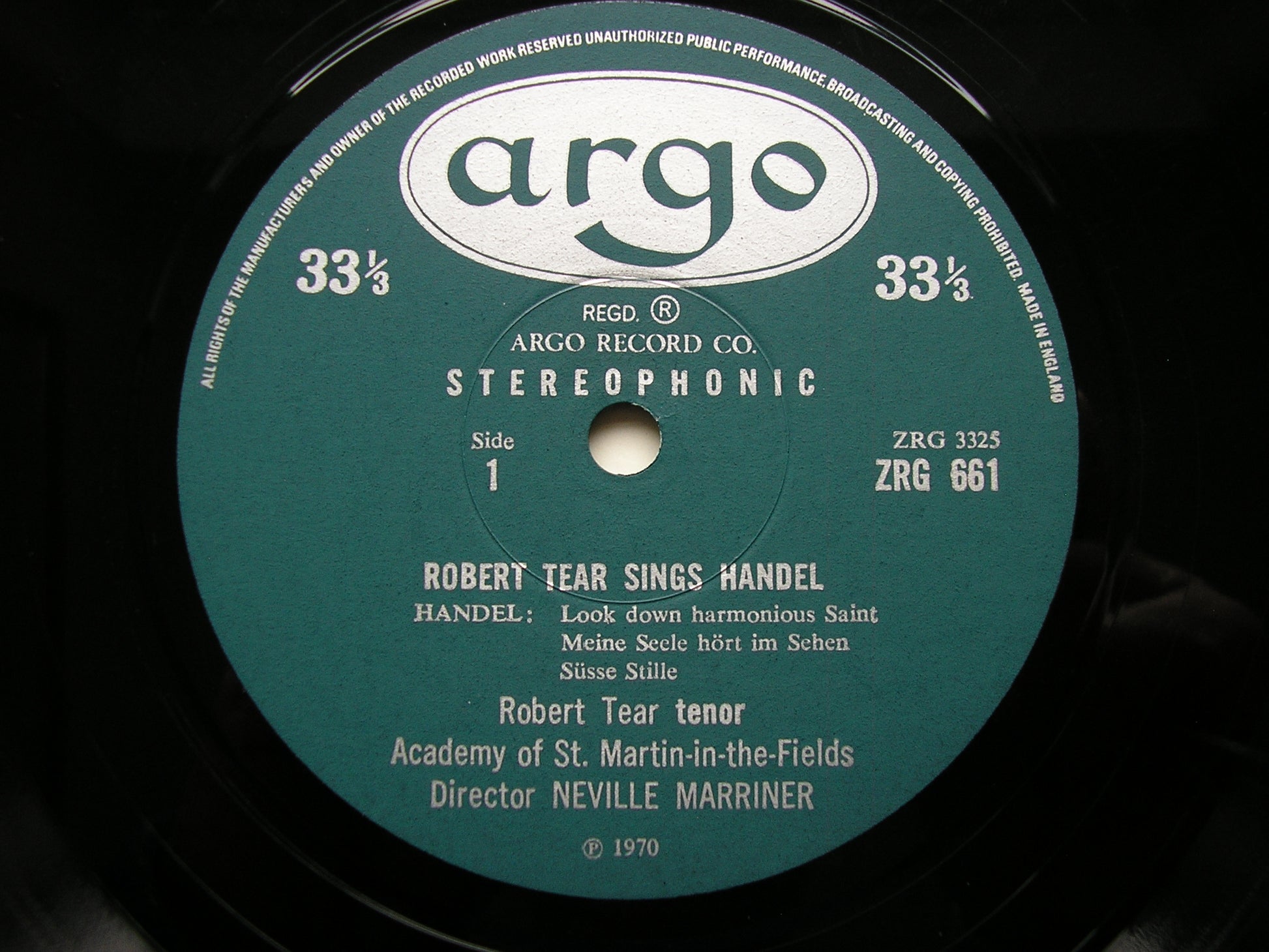 ARNE / HOOK / BOYCE / HANDEL: ARIAS / SONGS / CANTATAS ROBERT TEAR / ASMIF / MARRINER ZRG 661