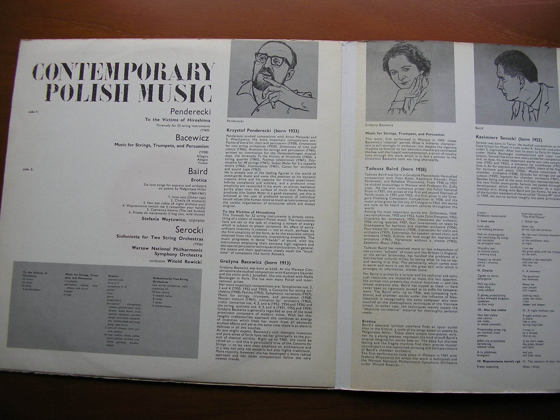 835 261   BACEWICZ: MUSIC FOR STRINGS, TRUMPETS & PERCUSSION / BAIRD: EROTICA STEFANIA WOYTOWICZ / PENDERECKI: TO THE VICTIMS OF HIROSHIMA / SEROCKI: SINFONIETTA   WITOLD ROWICKI / WARSAW SYMPHONY ORCHESTRA