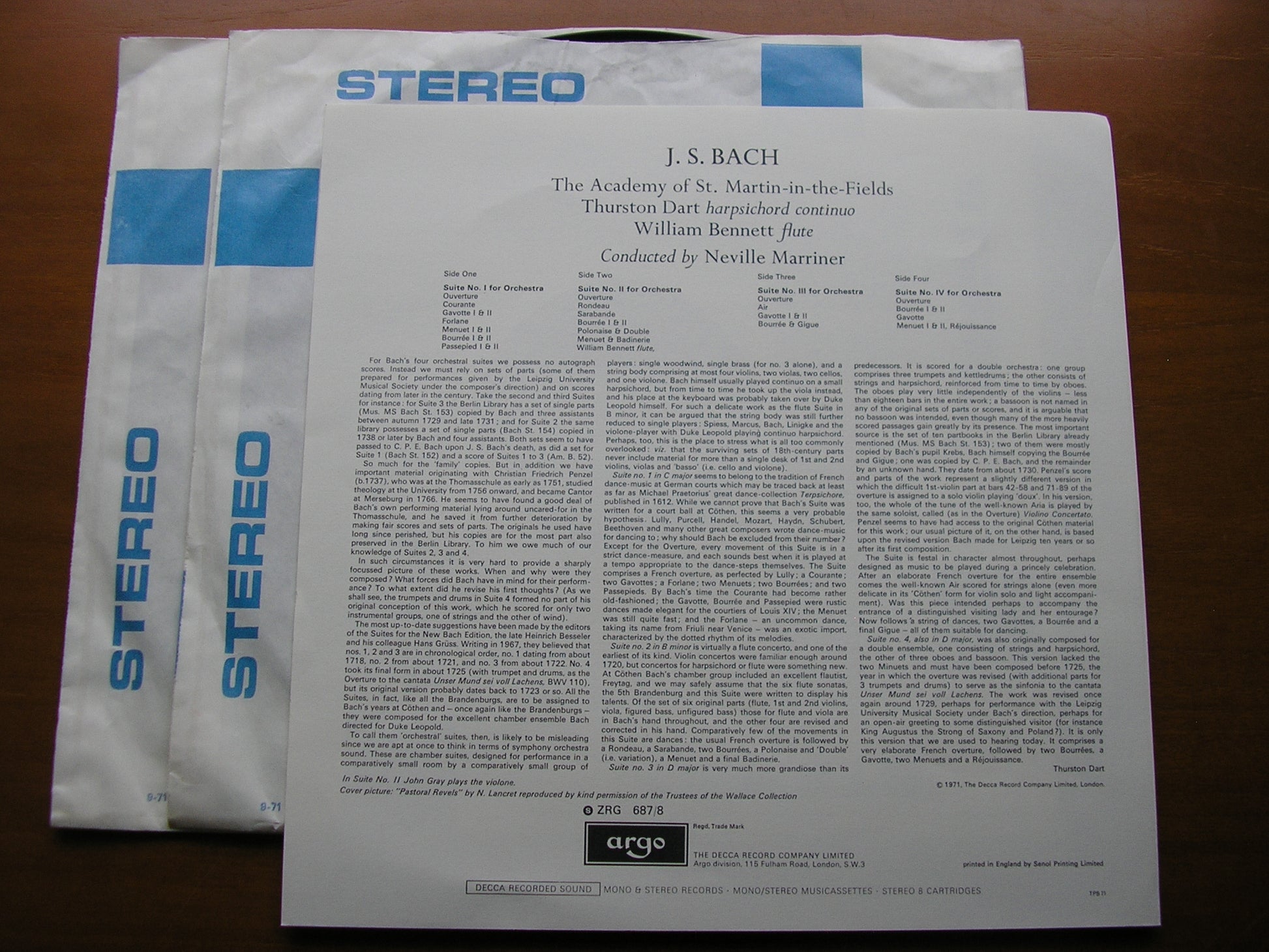 ZRG 687-8  BACH: THE FOUR ORCHESTRAL SUITES     NEVILLE MARRINER / ACADEMY OF ST MARTIN IN THE FIELDS