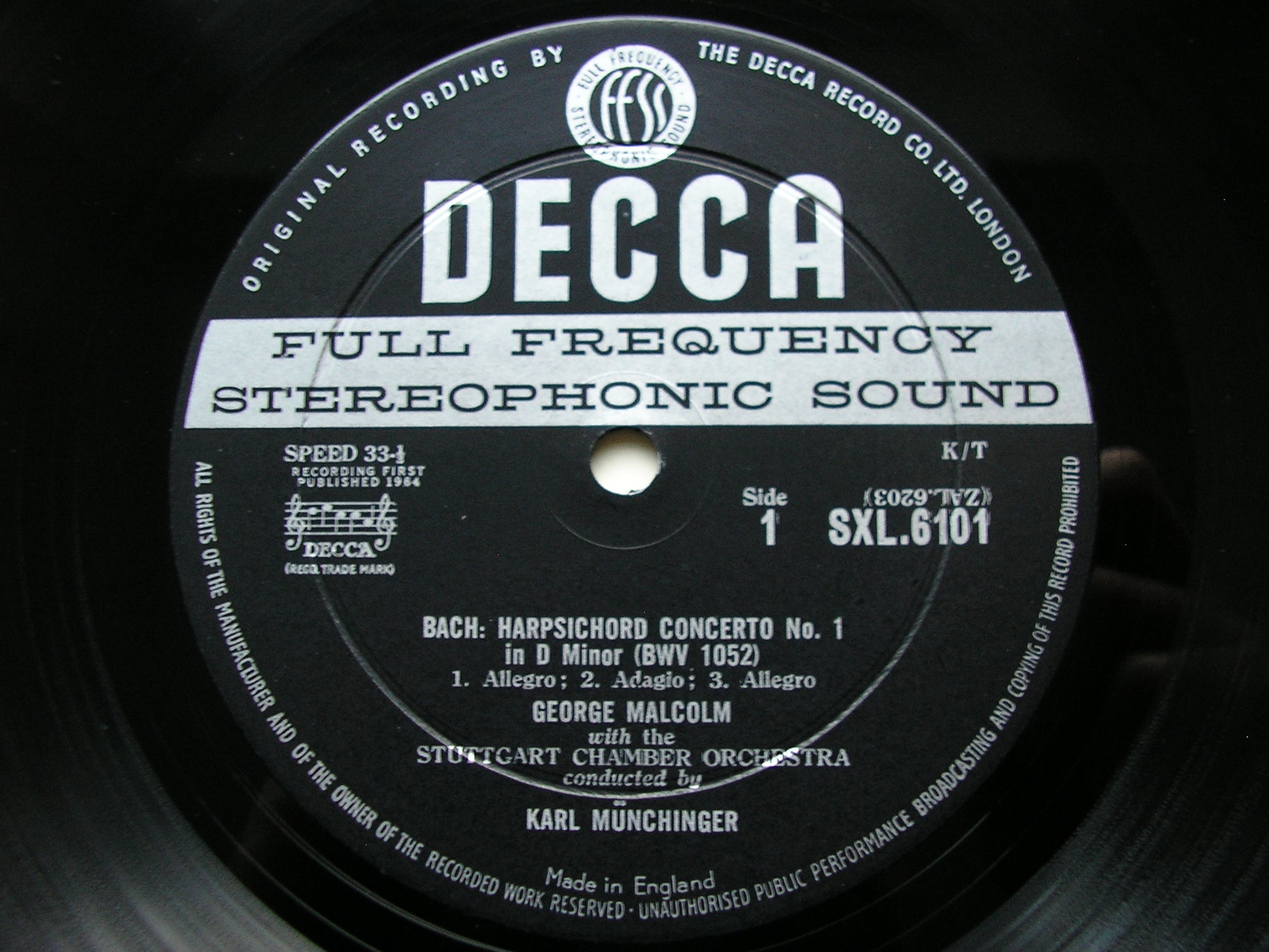 SXL 6101 BACH: HARPSICHORD CONCERTOS BWV 1052 & BWV 1053     GEORGE MALCOLM / STUTTGART CHAMBER ORCHESTRA / KARL MUNCHINGER