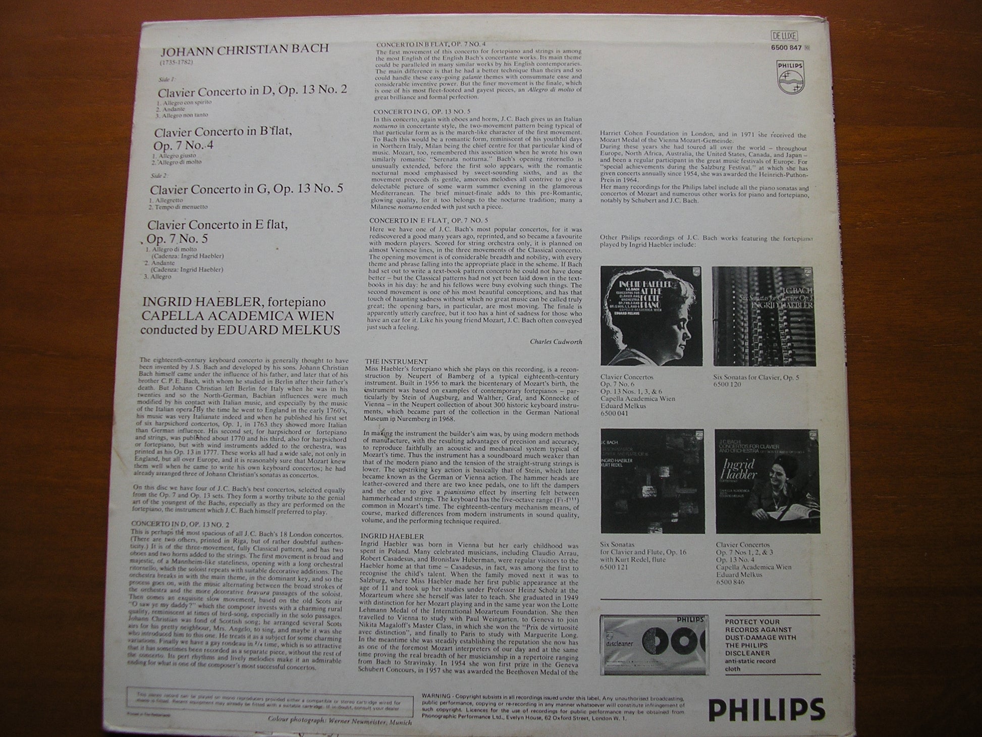6500 847 BACH, JC: FOUR CLAVIER CONCERTOS INGRID HAEBLER / CAPELLA ACADEMICA WIEN / MELKUS