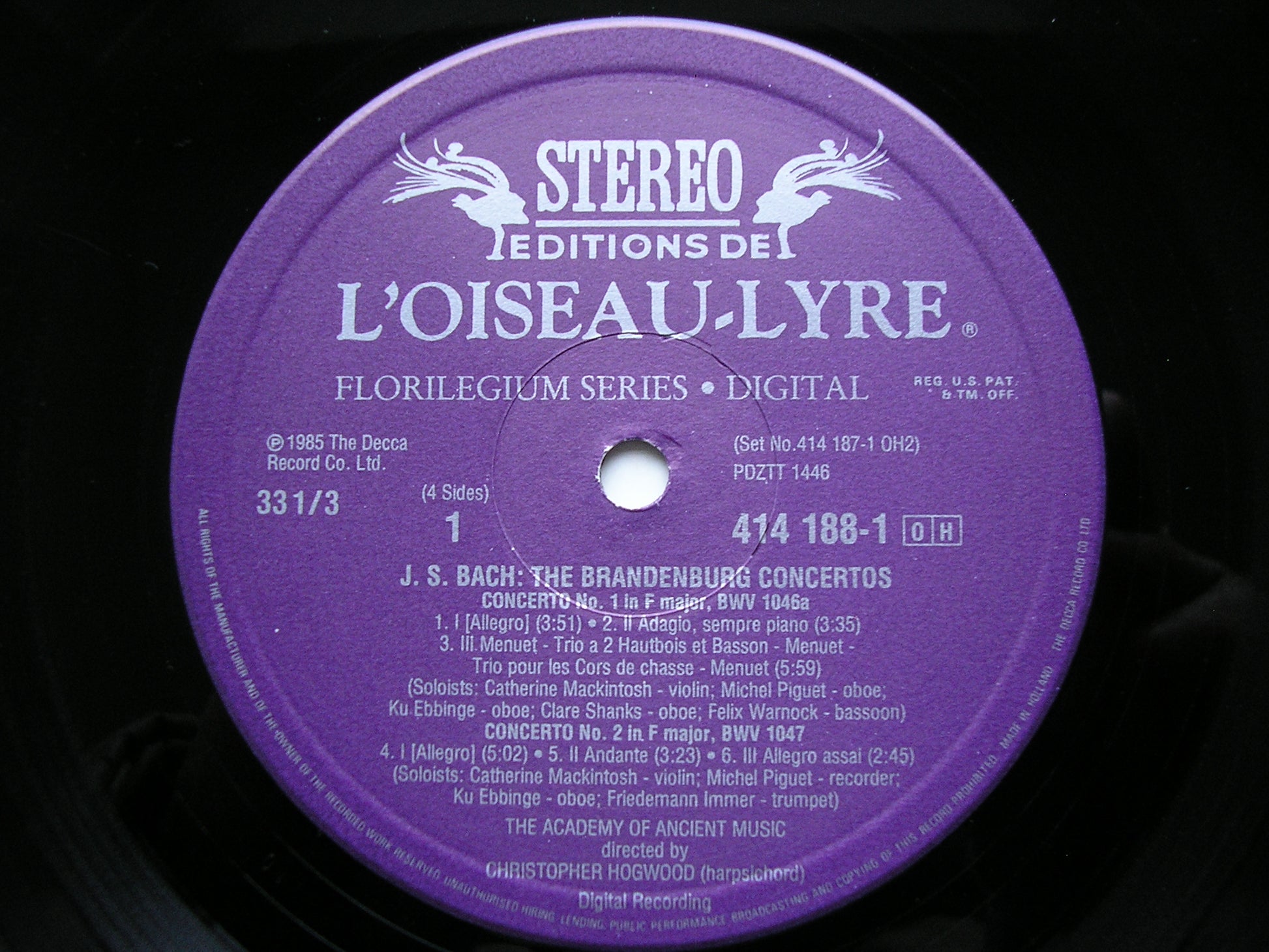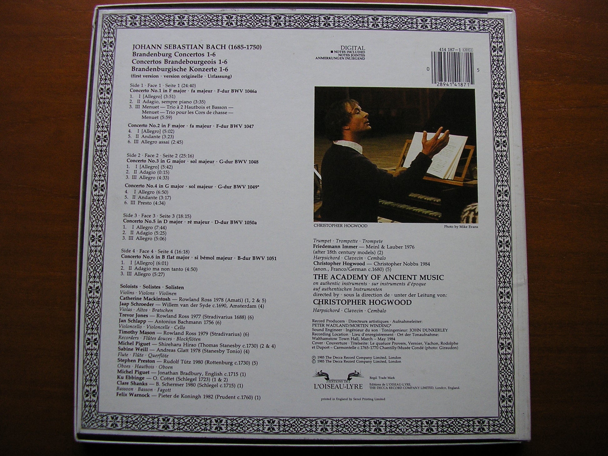 414 187  BACH: THE BRANDENBURG CONCERTOS    CHRISTOPHER HOGWOOD / THE ACADEMY OF ANCIENT MUSIC
