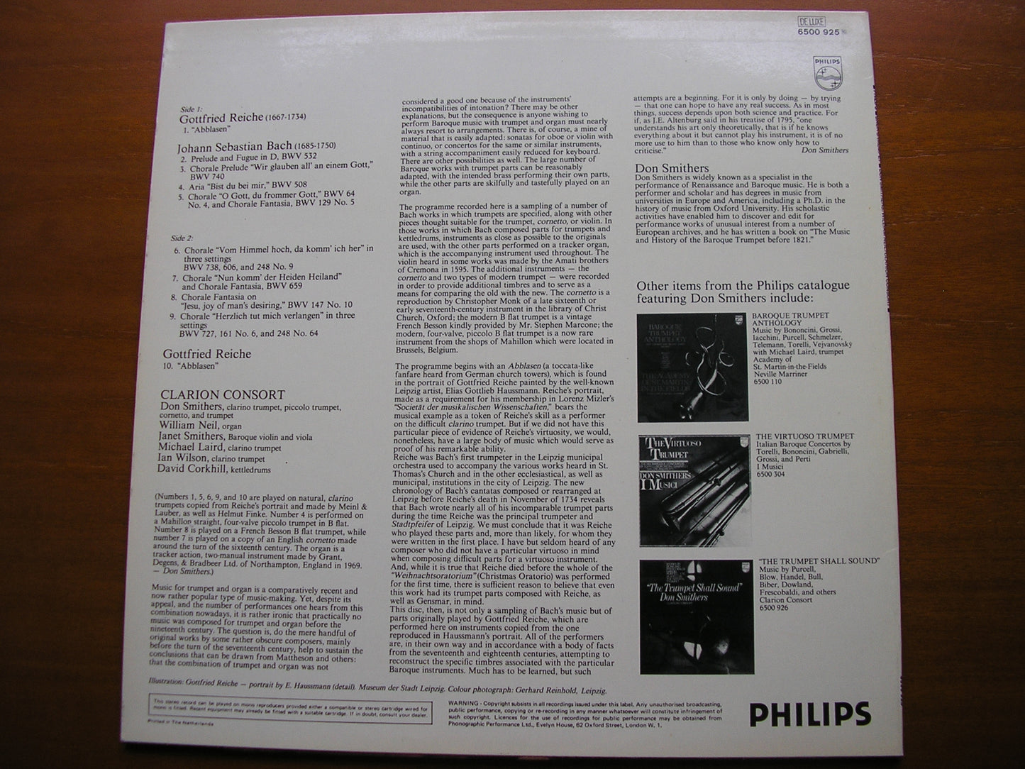 6500 925  BACH: MUSIC FOR TRUMPET    DON SMITHERS / CLARION CONSORT