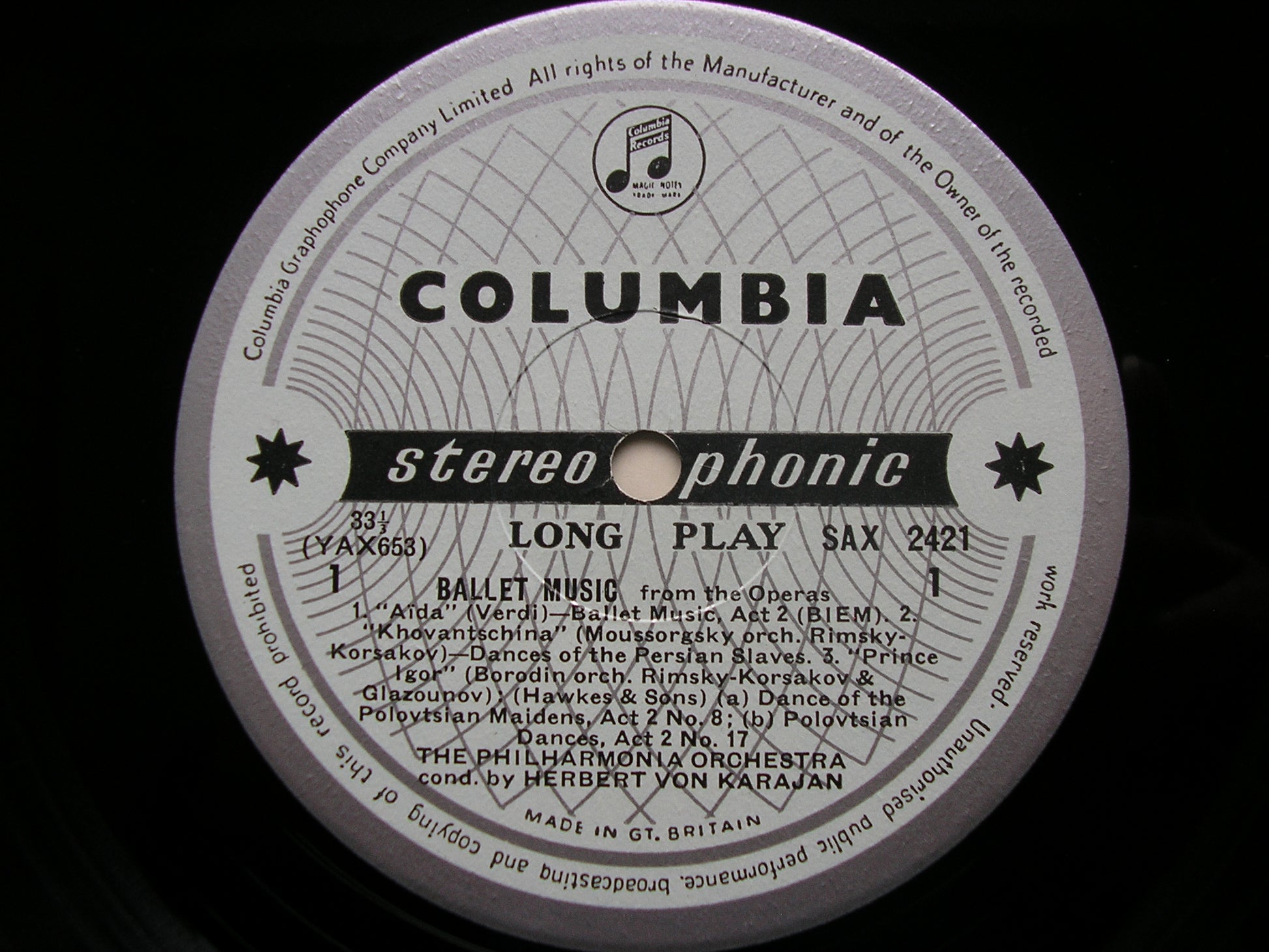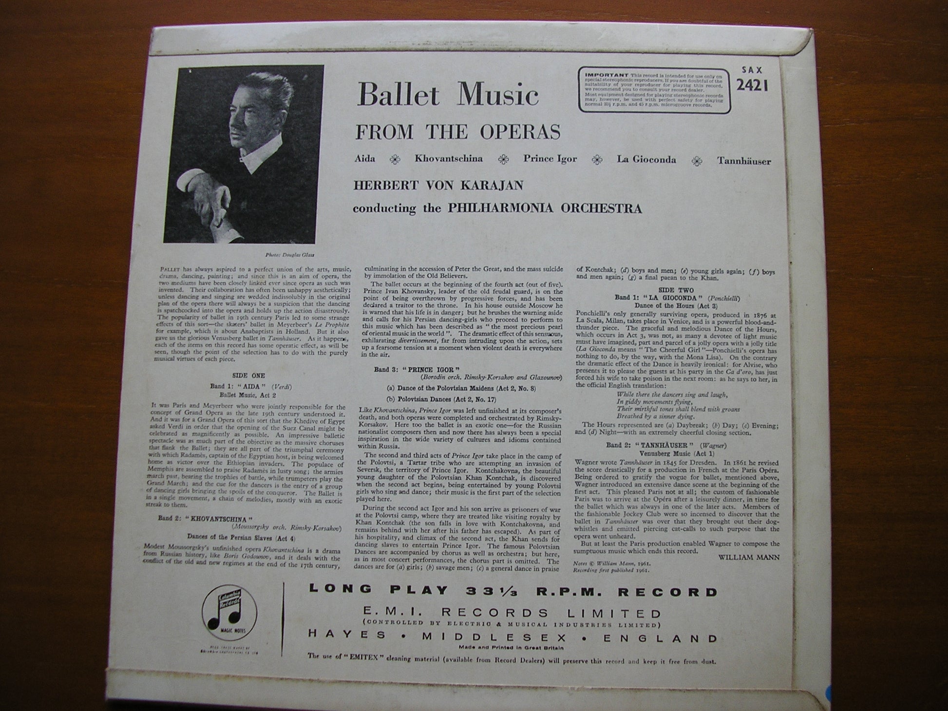 SAX 2421  BALLET MUSIC: VERDI / PONCHIELLI / WAGNER / BORODIN / MUSSORGSKY  HERBERT VON KARAJAN / PHILHARMONIA ORCHESTRA