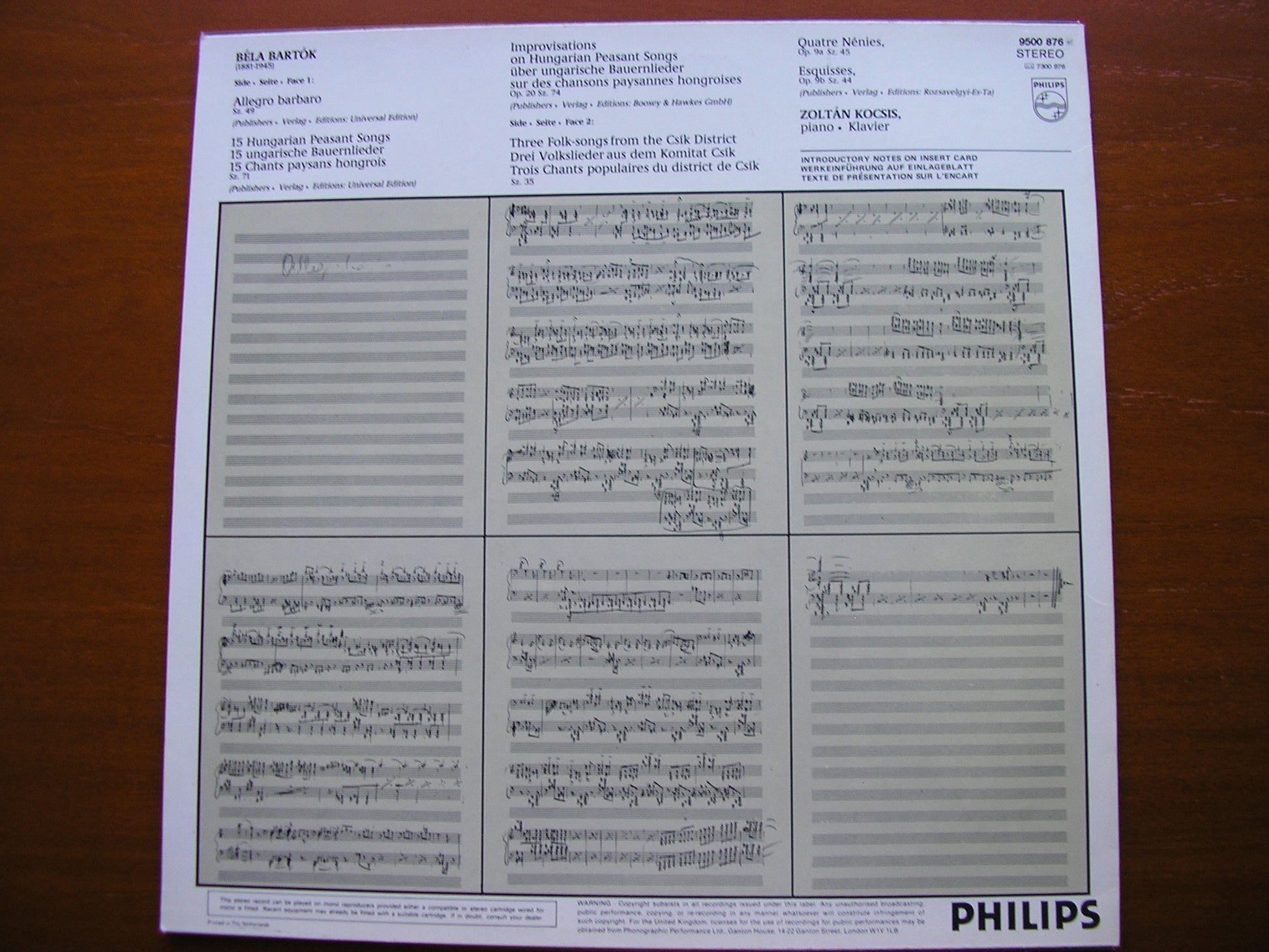 9500 876  BARTOK: ALLEGRO BARBARO / ESQUISSES / IMPROVISATIONS / 3 HUNGARIAN FOLK SONGS / QUATRE NENIES / 15 HUNGARIAN PEASANT SONGS     ZOLTAN KOCSIS
