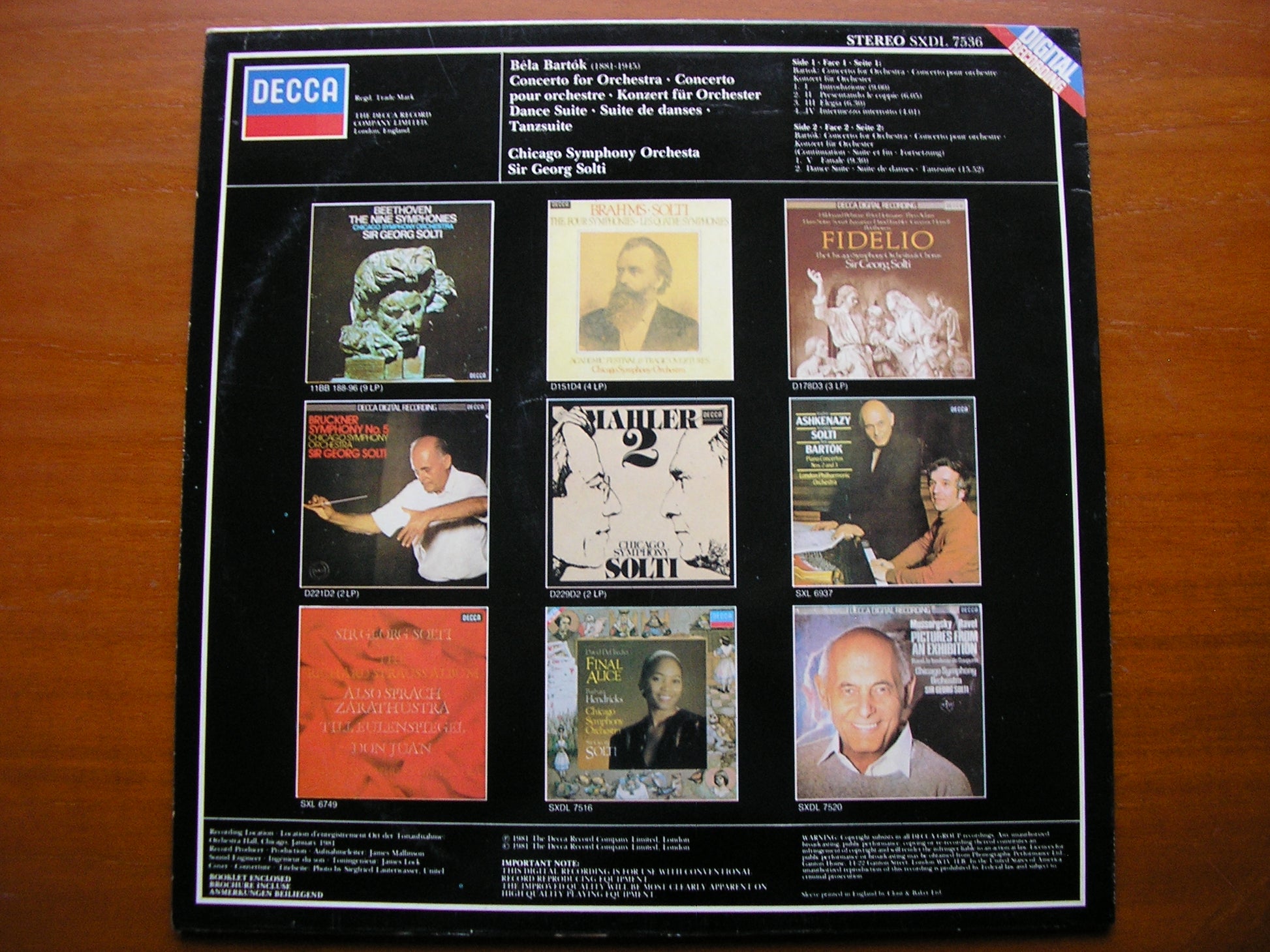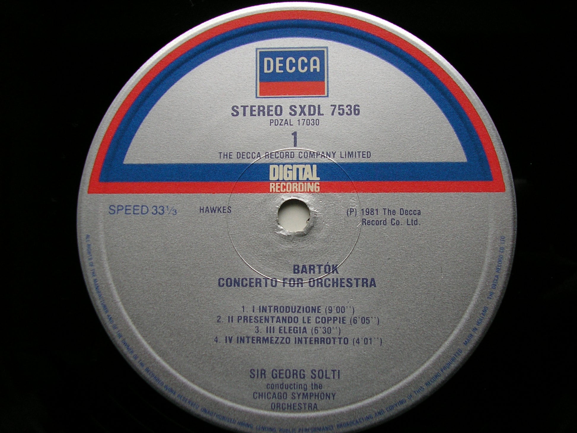 SXDL 7536  BARTOK: CONCERTO FOR ORCHESTRA / DANCE SUITE    SIR GEORG SOLTI / CHICAGO SYMPHONY ORCHESTRA