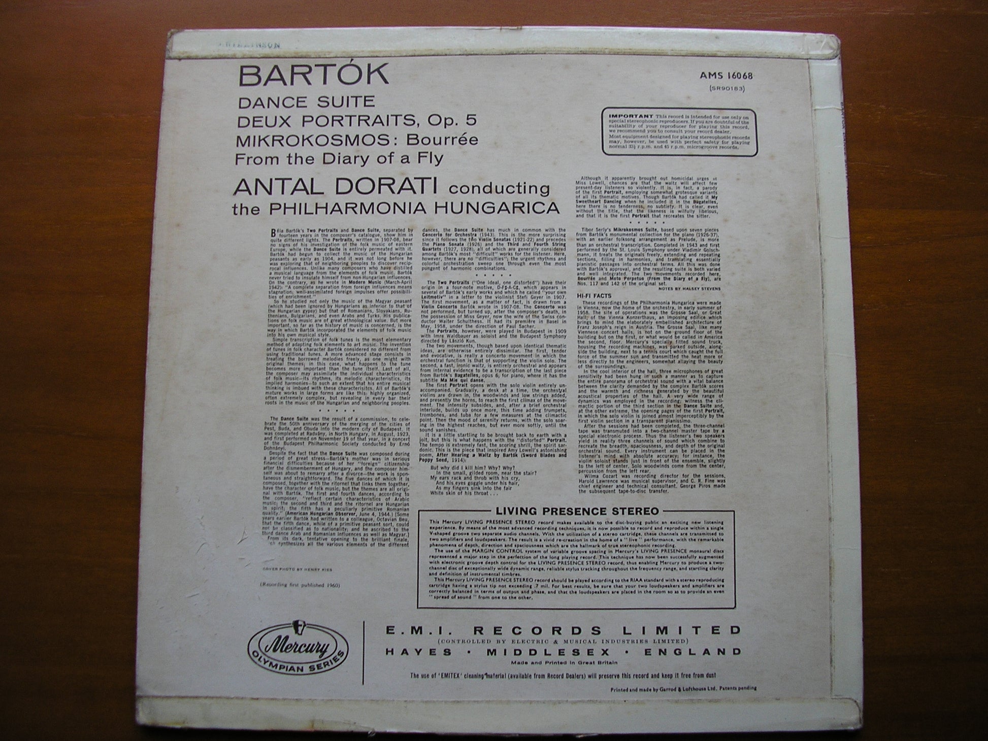 BARTOK: DANCE SUITE / TWO PORTRAITS / MIKROKOSMOS DORATI / PHILHARMONIA HUNGARICA AMS 16068