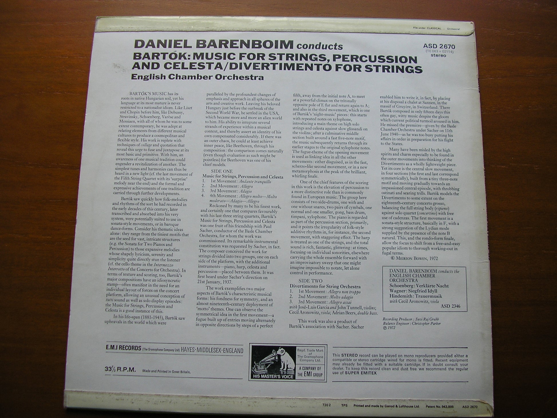 ASD 2670 BARTOK: MUSIC FOR STRINGS, PERCUSSION & CELESTA DANIEL BARENBOIM / ENGLISH CHAMBER ORCHESTRA