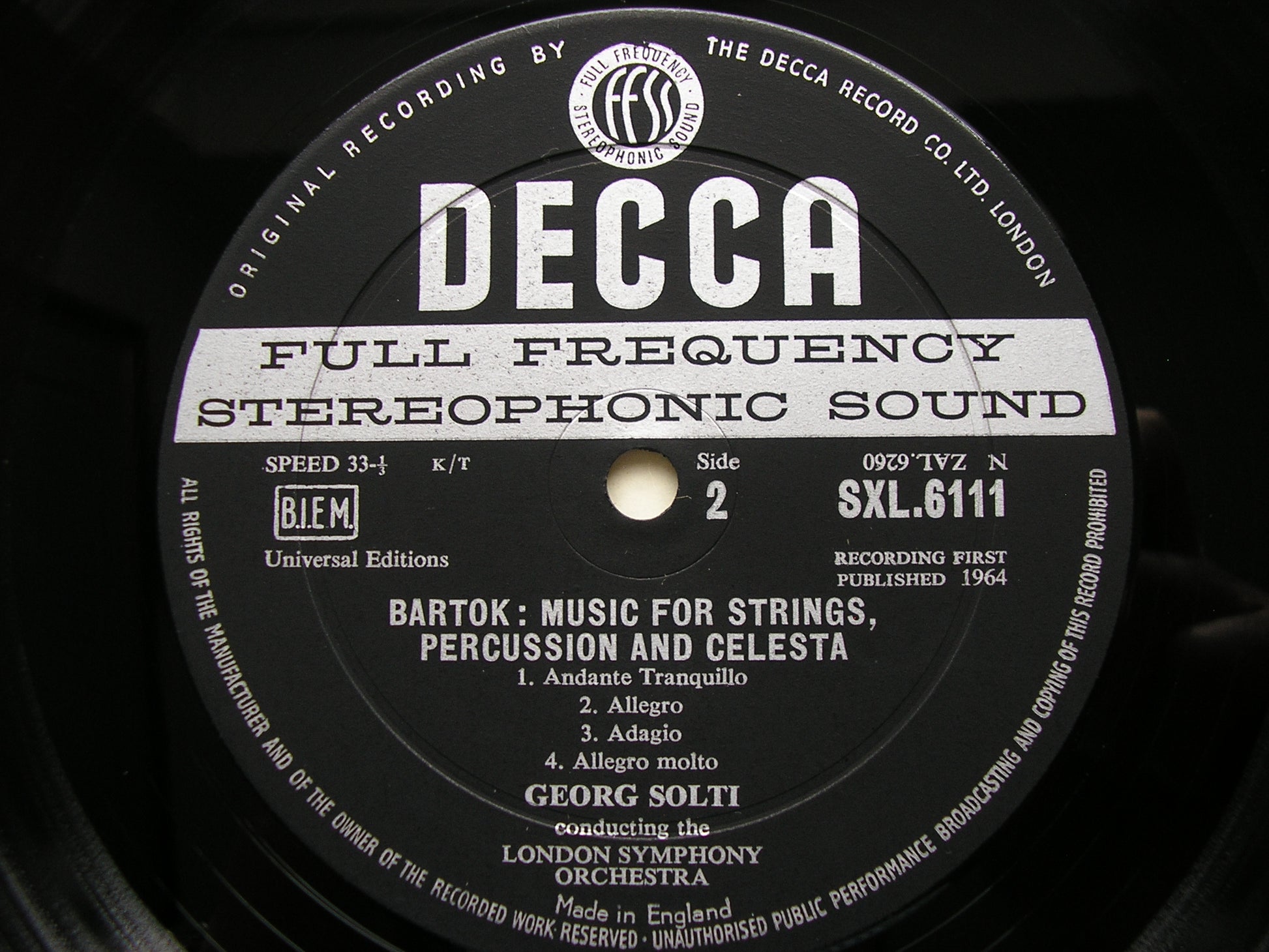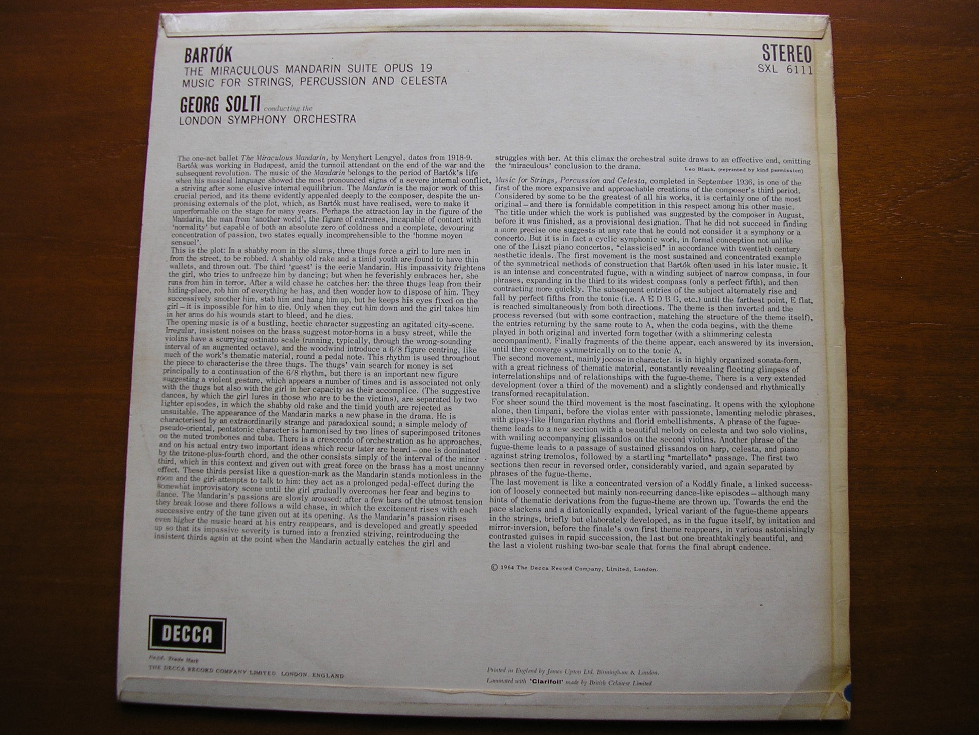 SXL 6111  BARTOK: MUSIC FOR STRINGS, PERCUSSION & CELESTA / THE MIRACULOUS MANDARIN    GEORG SOLTI / LONDON SYMPHONY ORCHESTRA