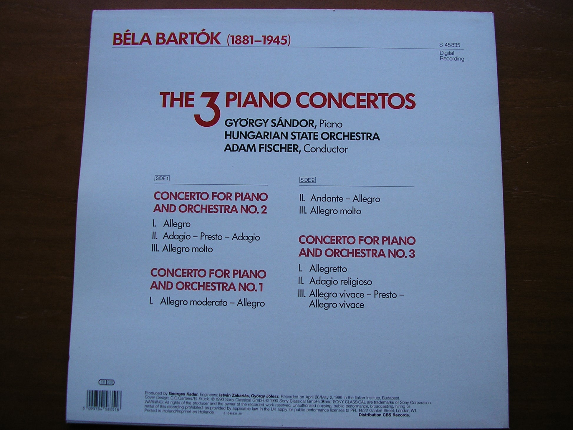 S 45835  BARTOK: THE 3 PIANO CONCERTOS    GYORGY SANDOR / HUNGARIAN STATE ORCHESTRA / ADAM FISCHER