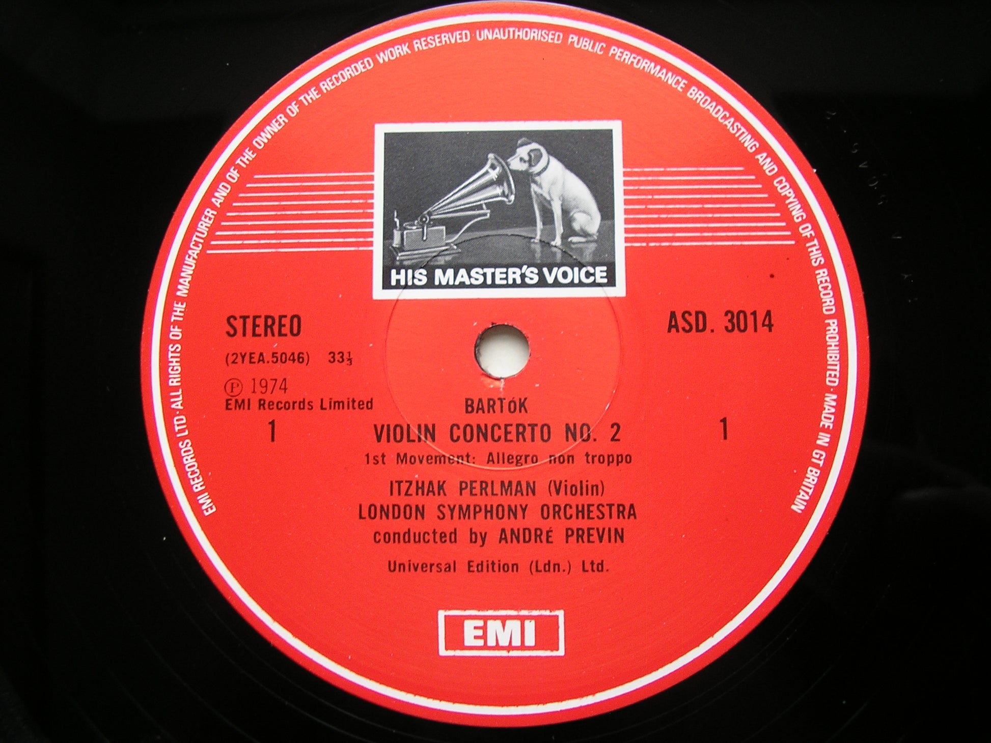 ASD 3014  BARTOK: VIOLIN CONCERTO No. 2    ITZHAK PERLMAN / LONDON SYMPHONY ORCHESTRA