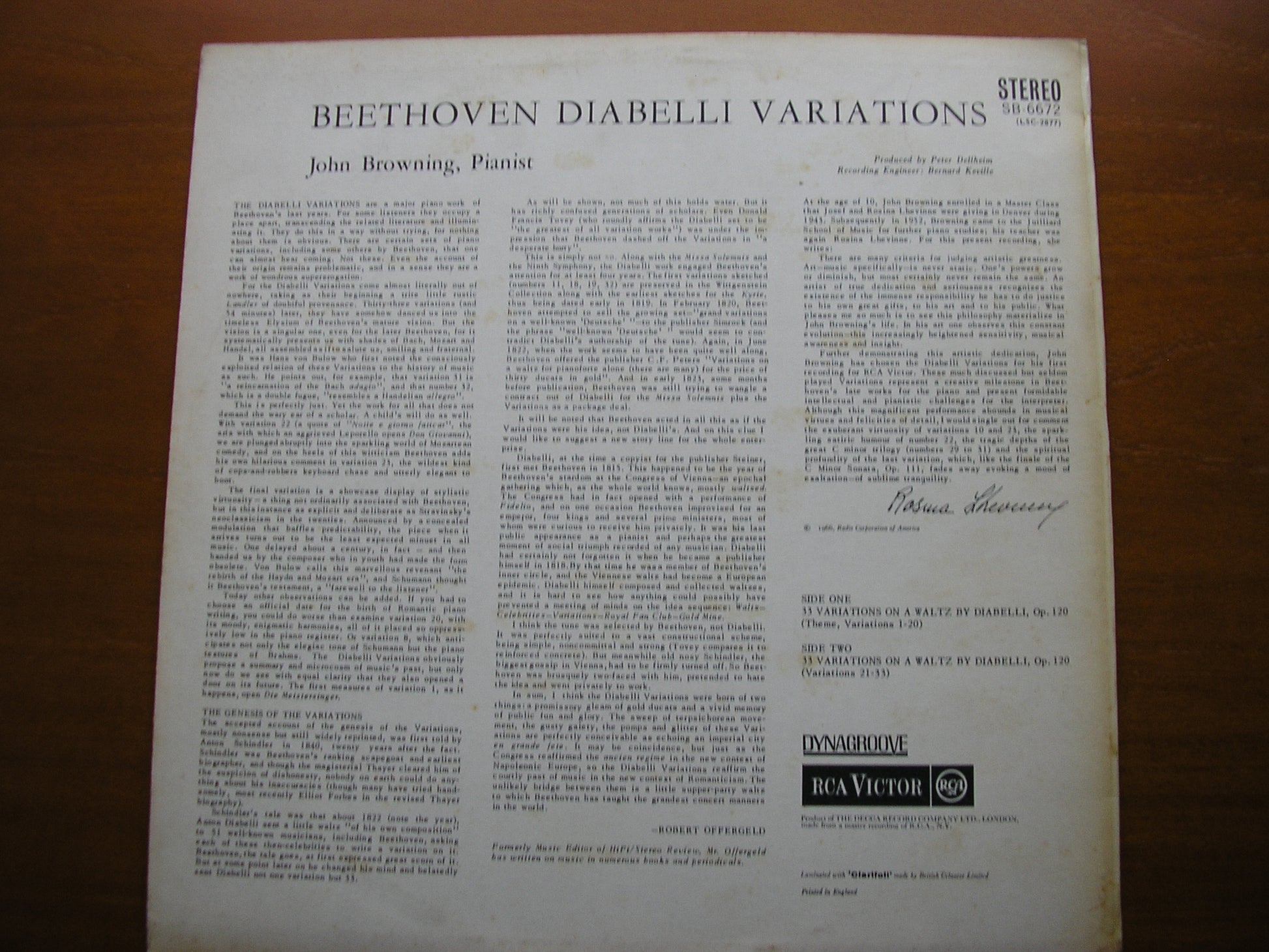 BEETHOVEN: DIABELLI VARIATIONS JOHN BROWNING SB 6672