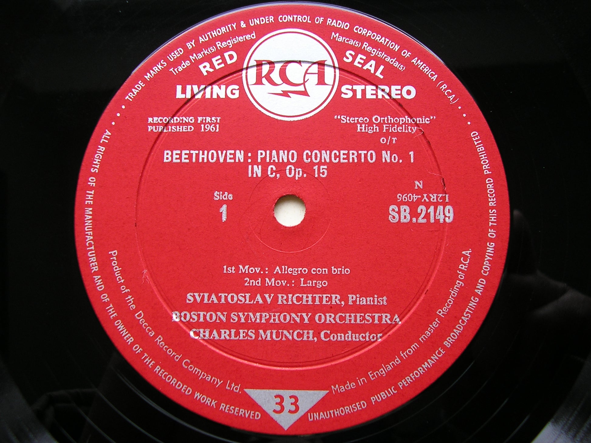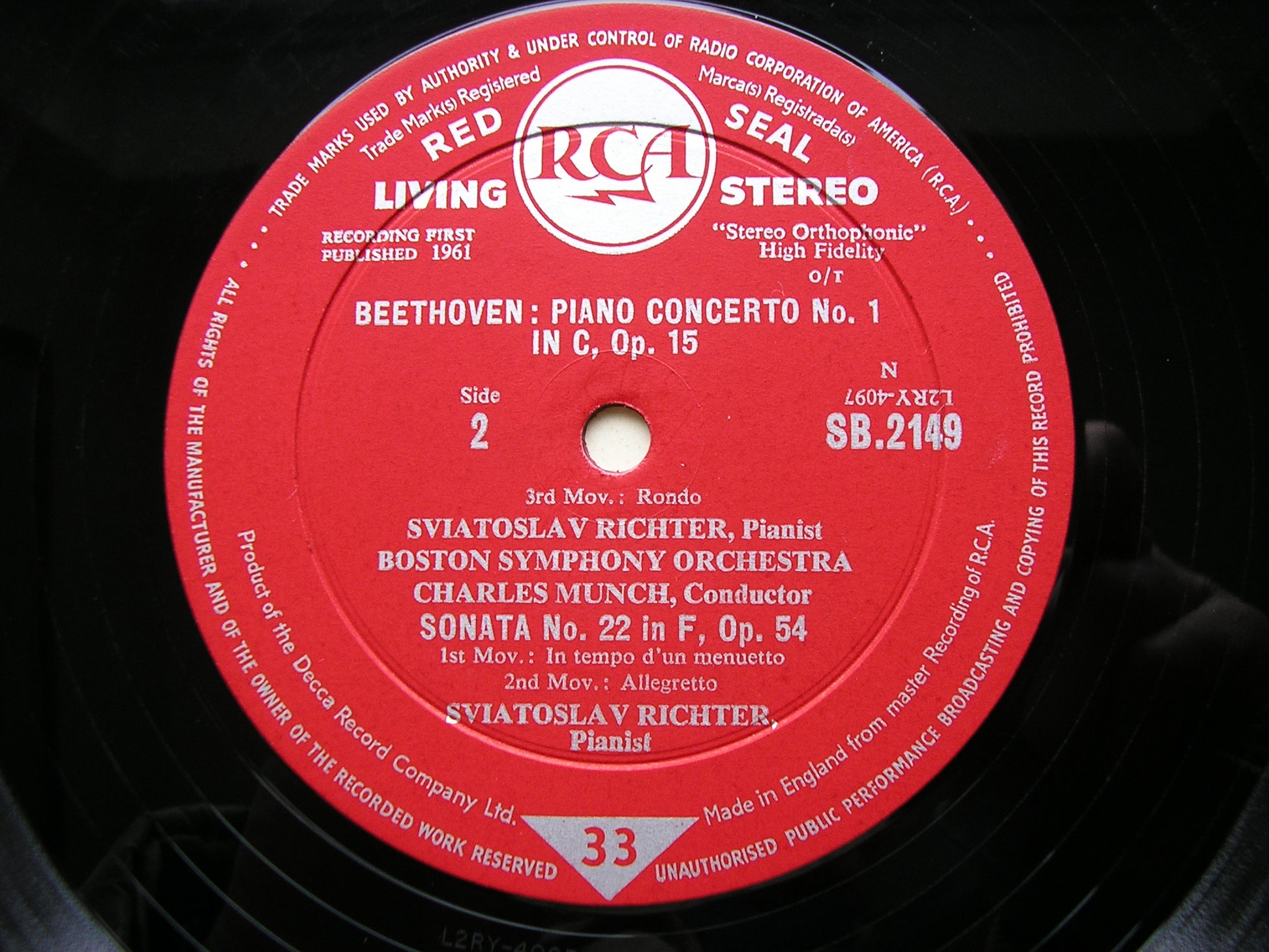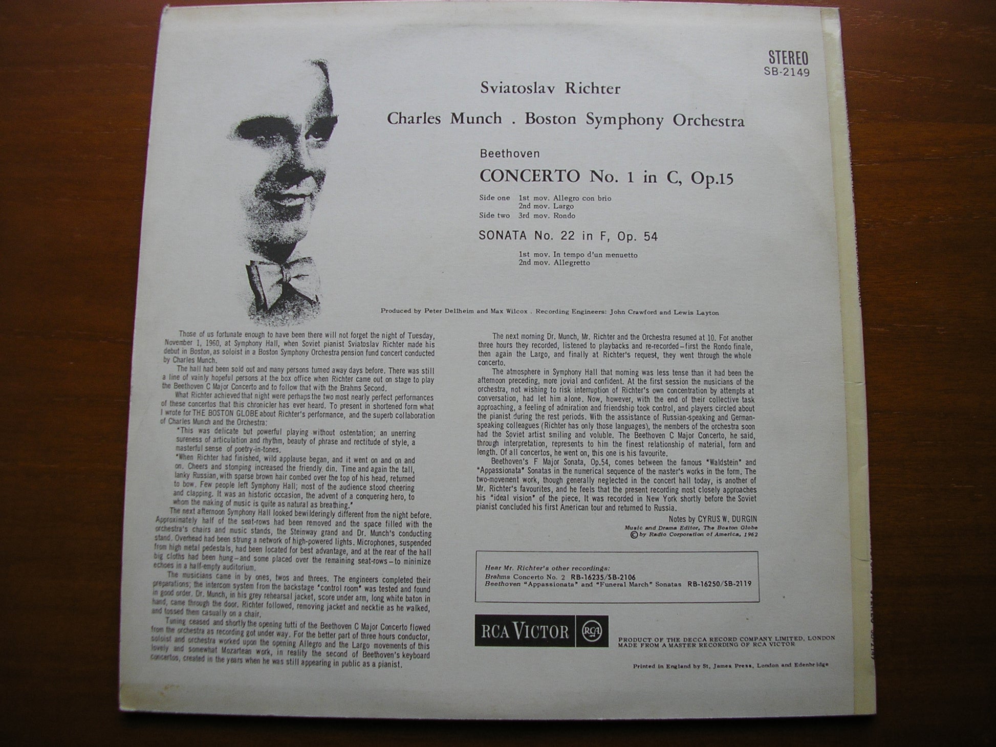 SB 2149  BEETHOVEN: PIANO CONCERTO No. 1 / PIANO SONATA No. 22    SVIATOSLAV RICHTER / BOSTON SYMPHONY ORCHESTRA / CHARLES MUNCH