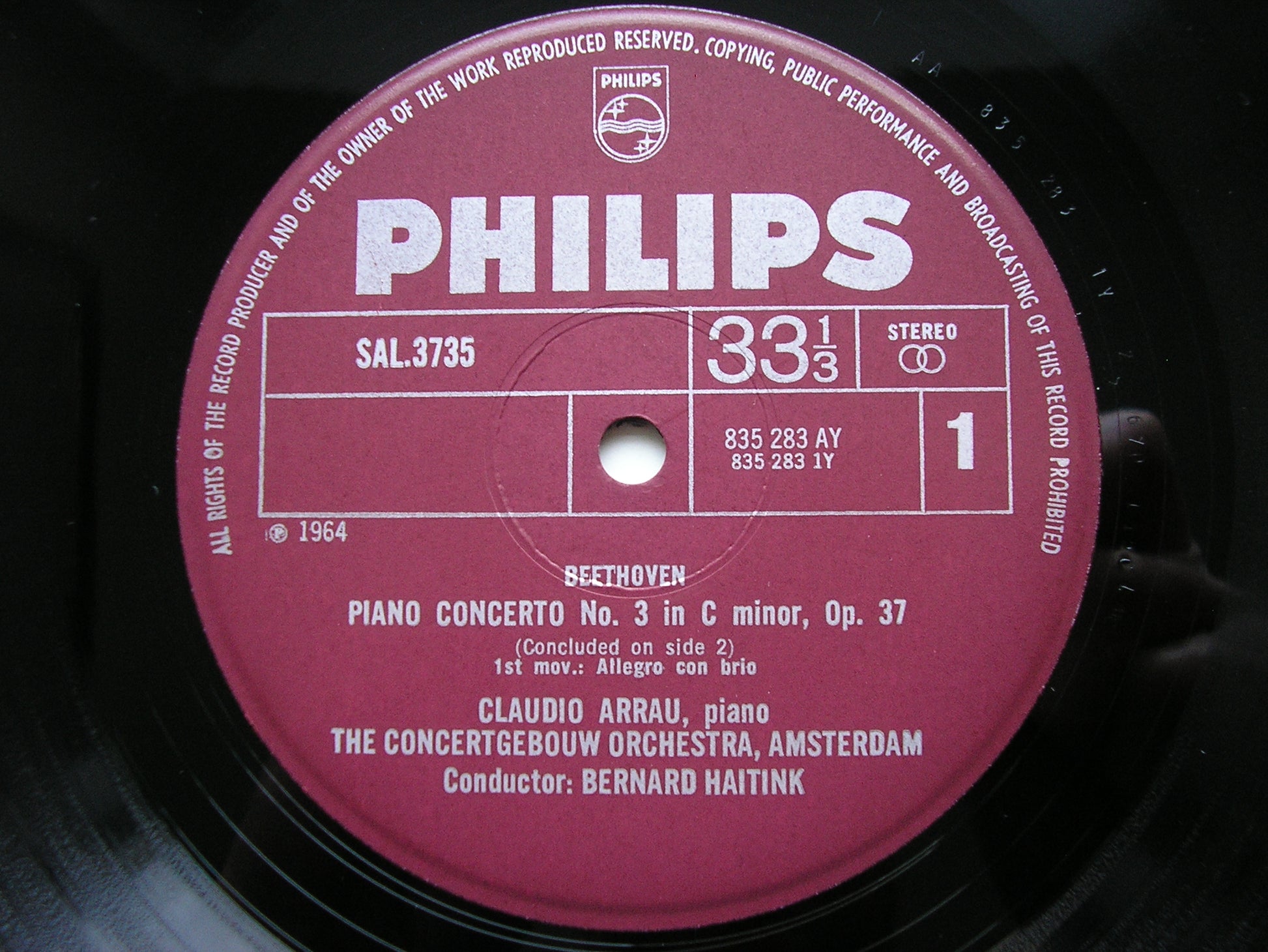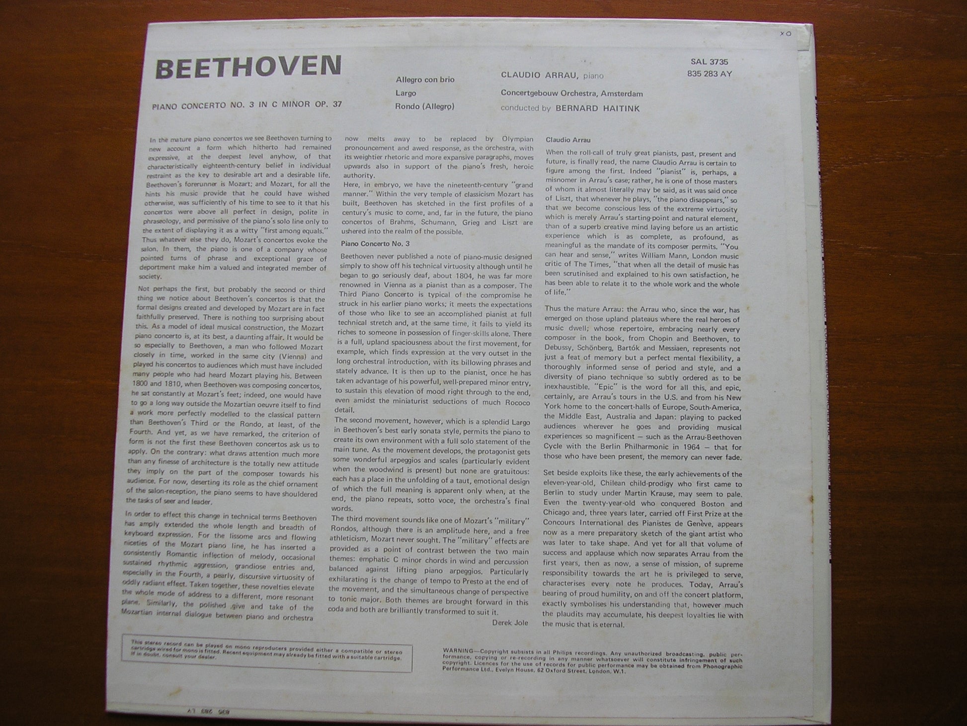 SAL 3735  BEETHOVEN: PIANO CONCERTO No. 3   CLAUDIO ARRAU / CONCERTGEBOUW ORCHESTRA / BERNARD HAITINK