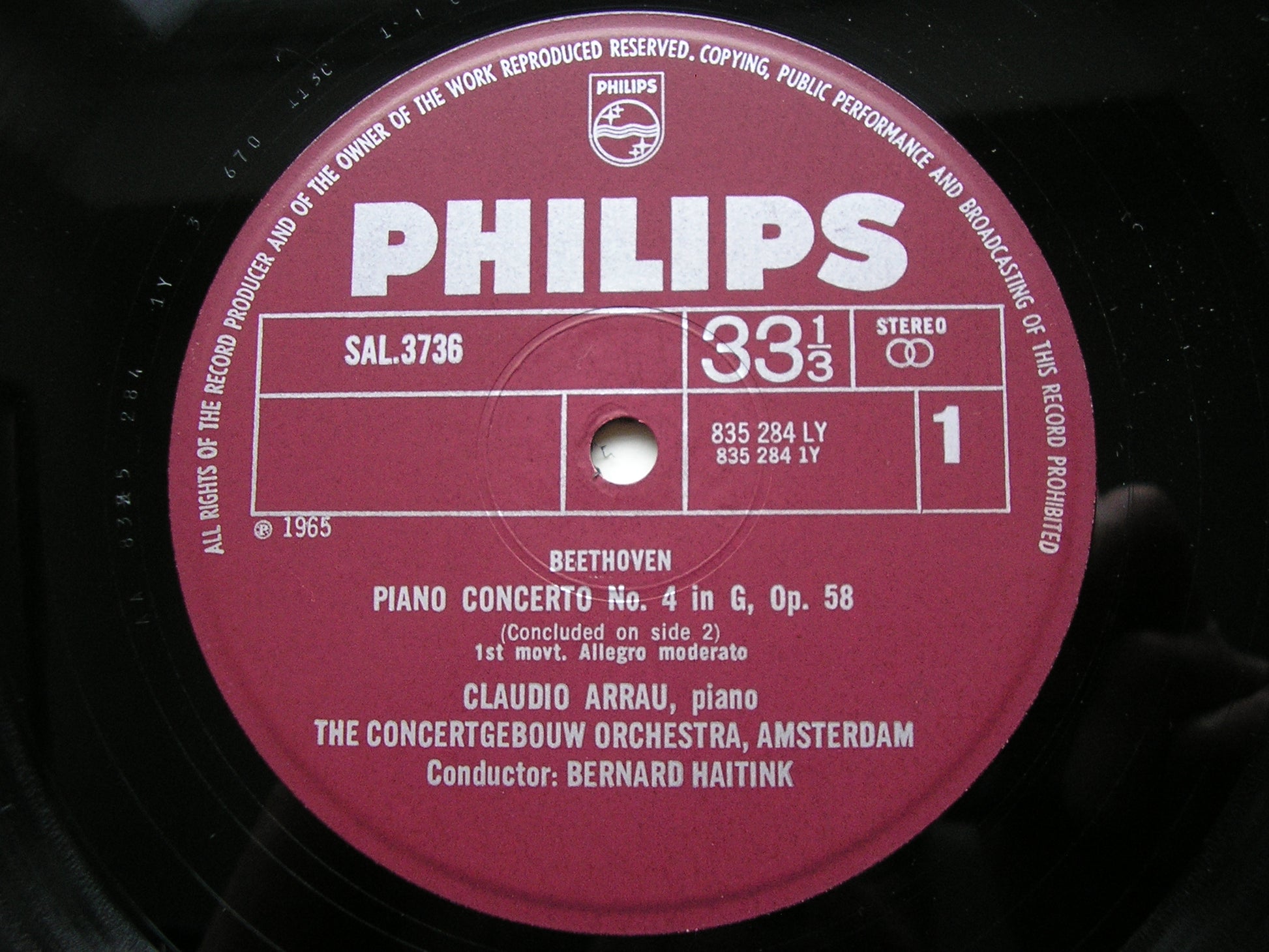 SAL 3736  BEETHOVEN: PIANO CONCERTO No. 4     CLAUDIO ARRAU / CONCERTGEBOUW ORCHESTRA / BERNARD HAITINK