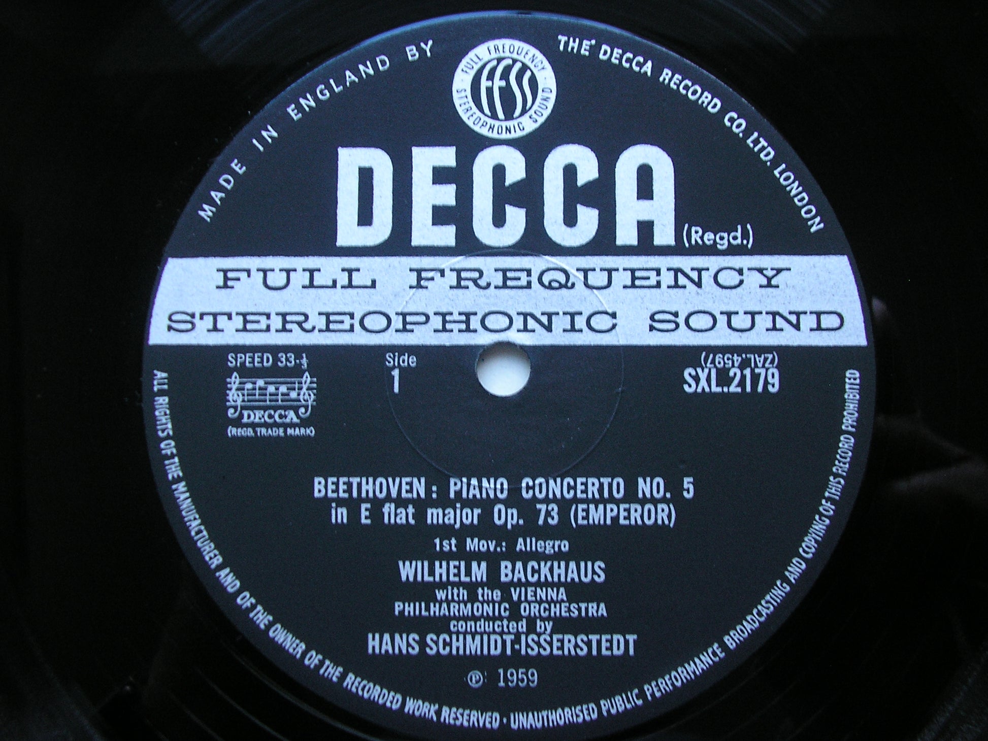 SXL 2179  BEETHOVEN: PIANO CONCERTO No. 5     WILHELM BACKHAUS / VIENNA PHILHARMONIC ORCHESTRA / HANS SCHMIDT-ISSERSTEDT