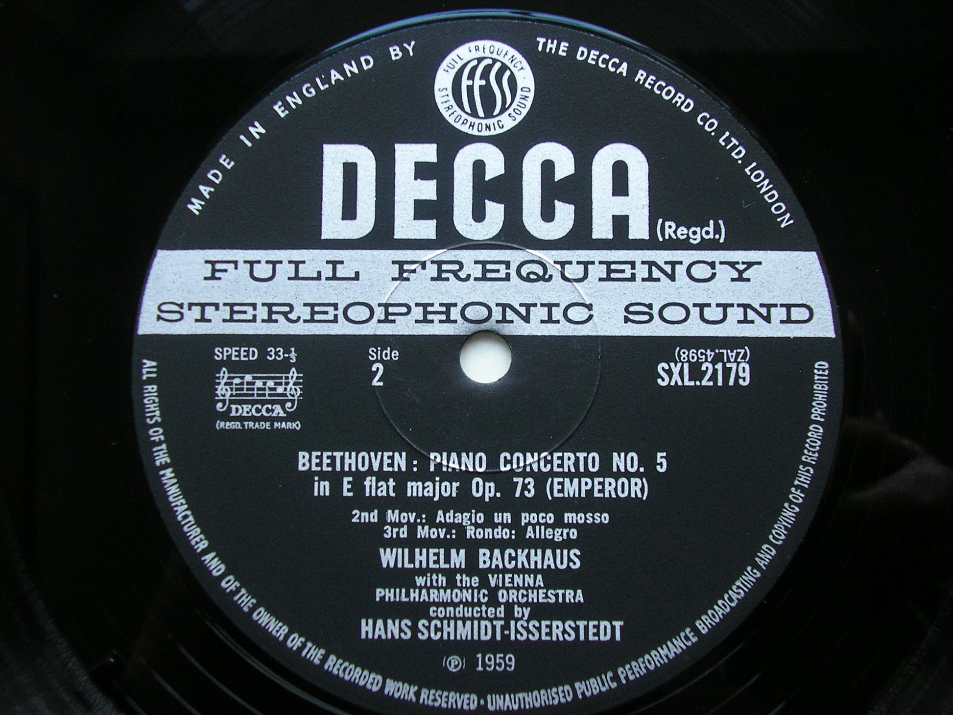BEETHOVEN: PIANO CONCERTO No. 5 'Emperor' BACKHAUS / VIENNA PHILHARMONIC / SCHMIDT-ISSERSTEDT SXL 2179