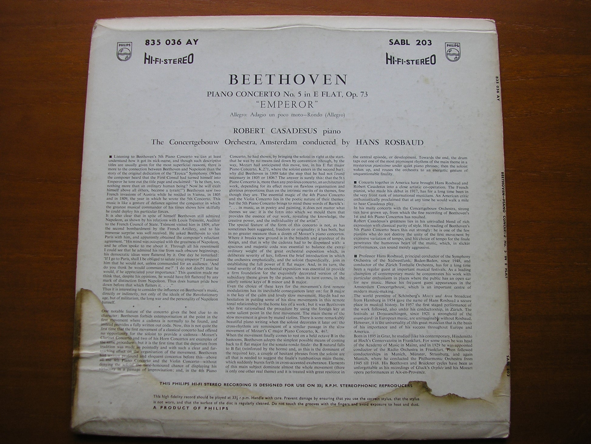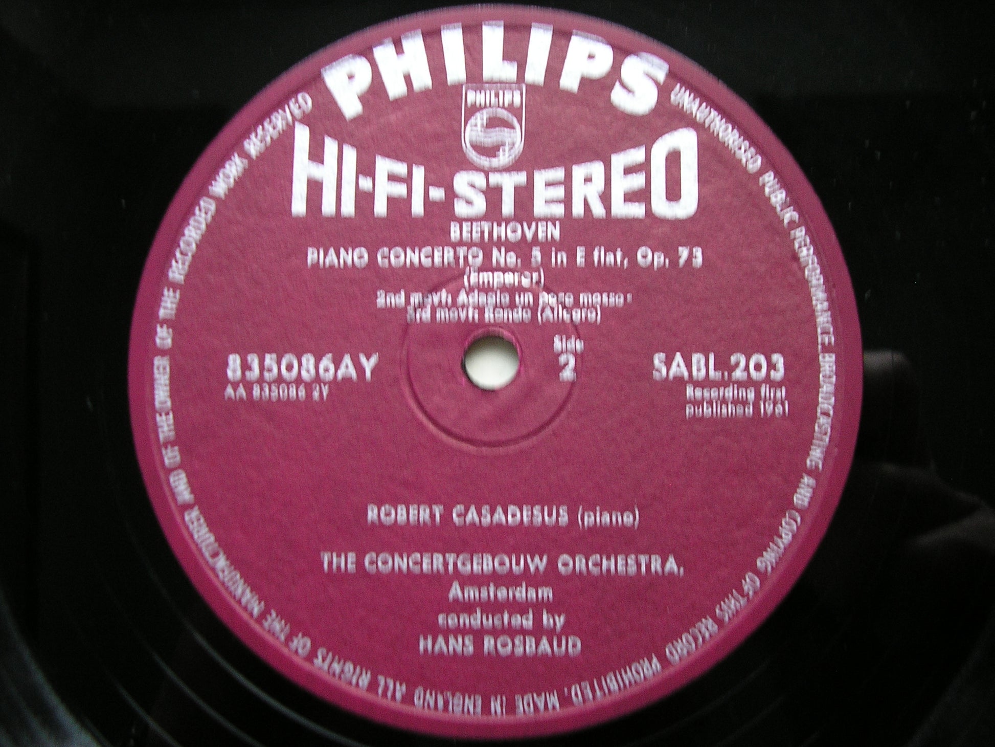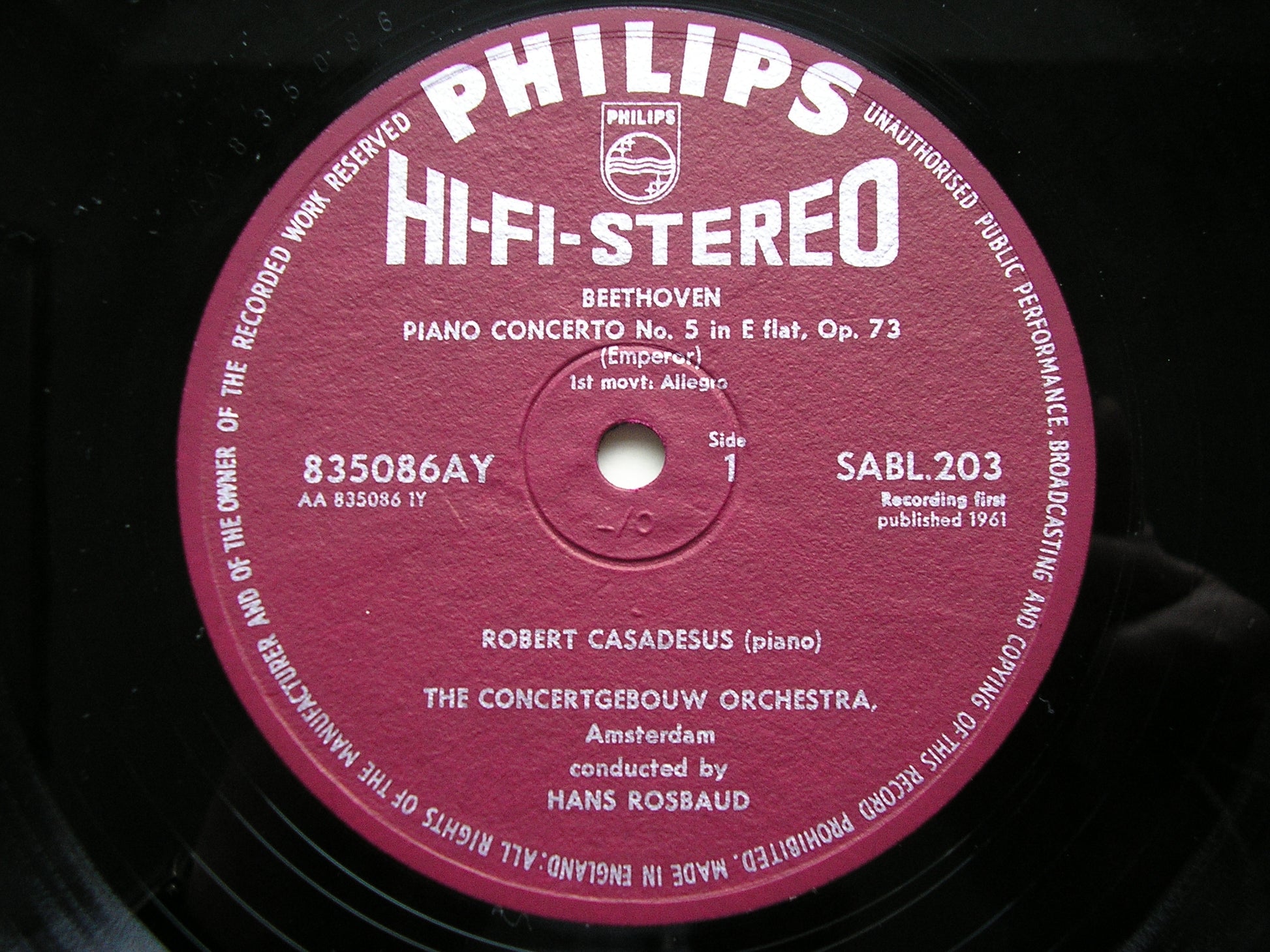 SABL 203  BEETHOVEN: PIANO CONCERTO No. 5     ROBERT CASADESUS / CONCERTGEBOUW ORCHESTRA / HANS ROSBAUD