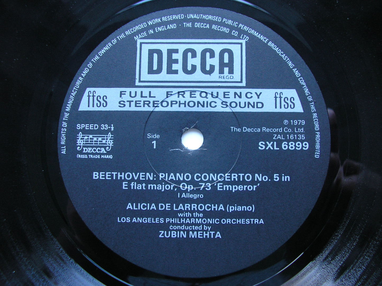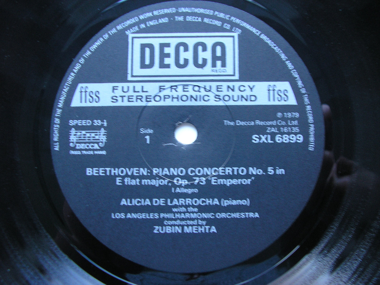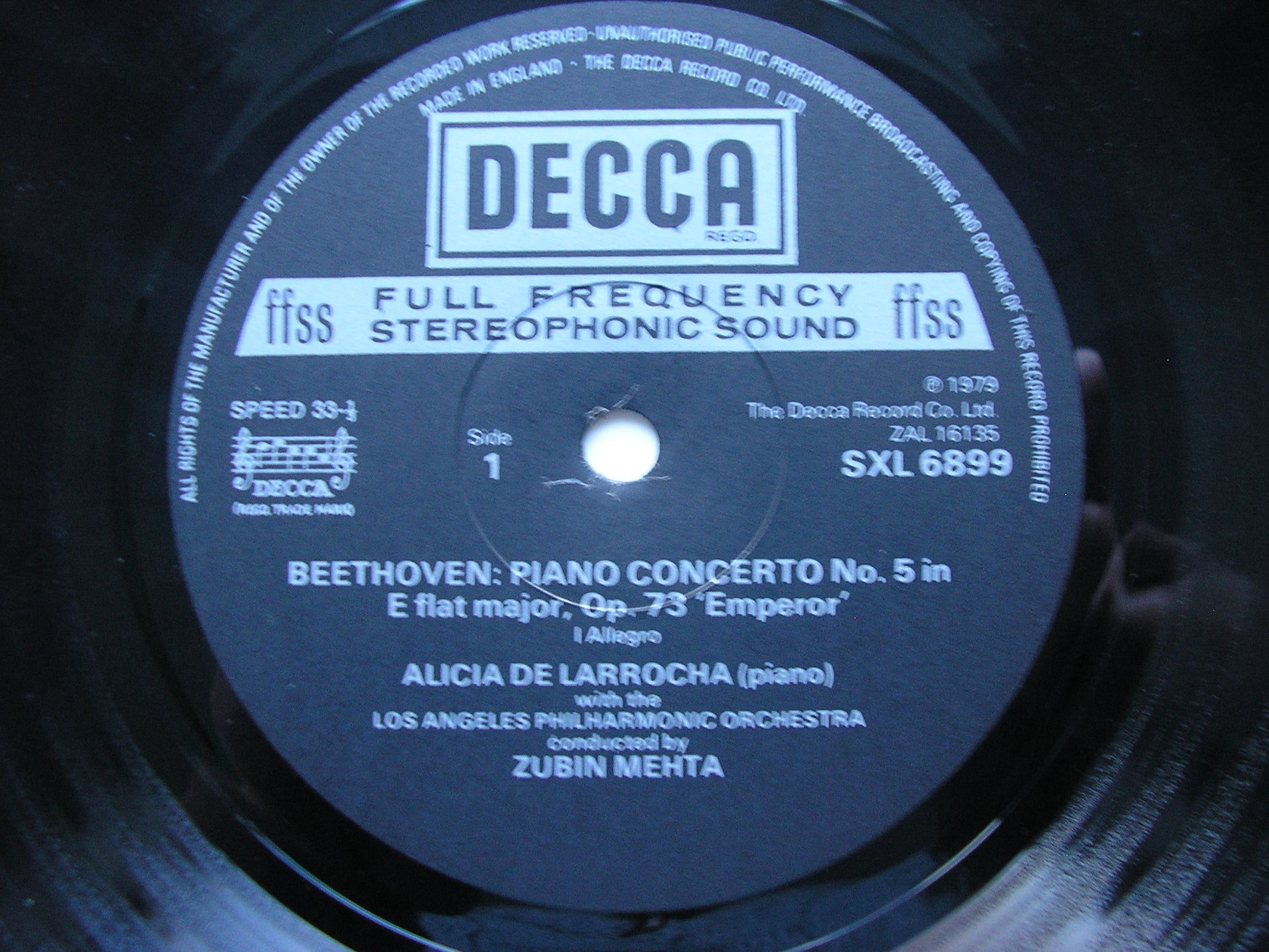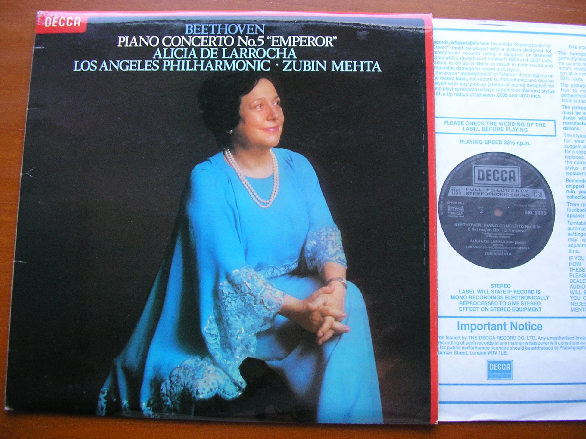 SXL 6899  BEETHOVEN: PIANO CONCERTO No. 5    ALICIA DE LARROCHA / LOS ANGELES PHILHARMONIC ORCHESTRA / ZUBIN MEHTA