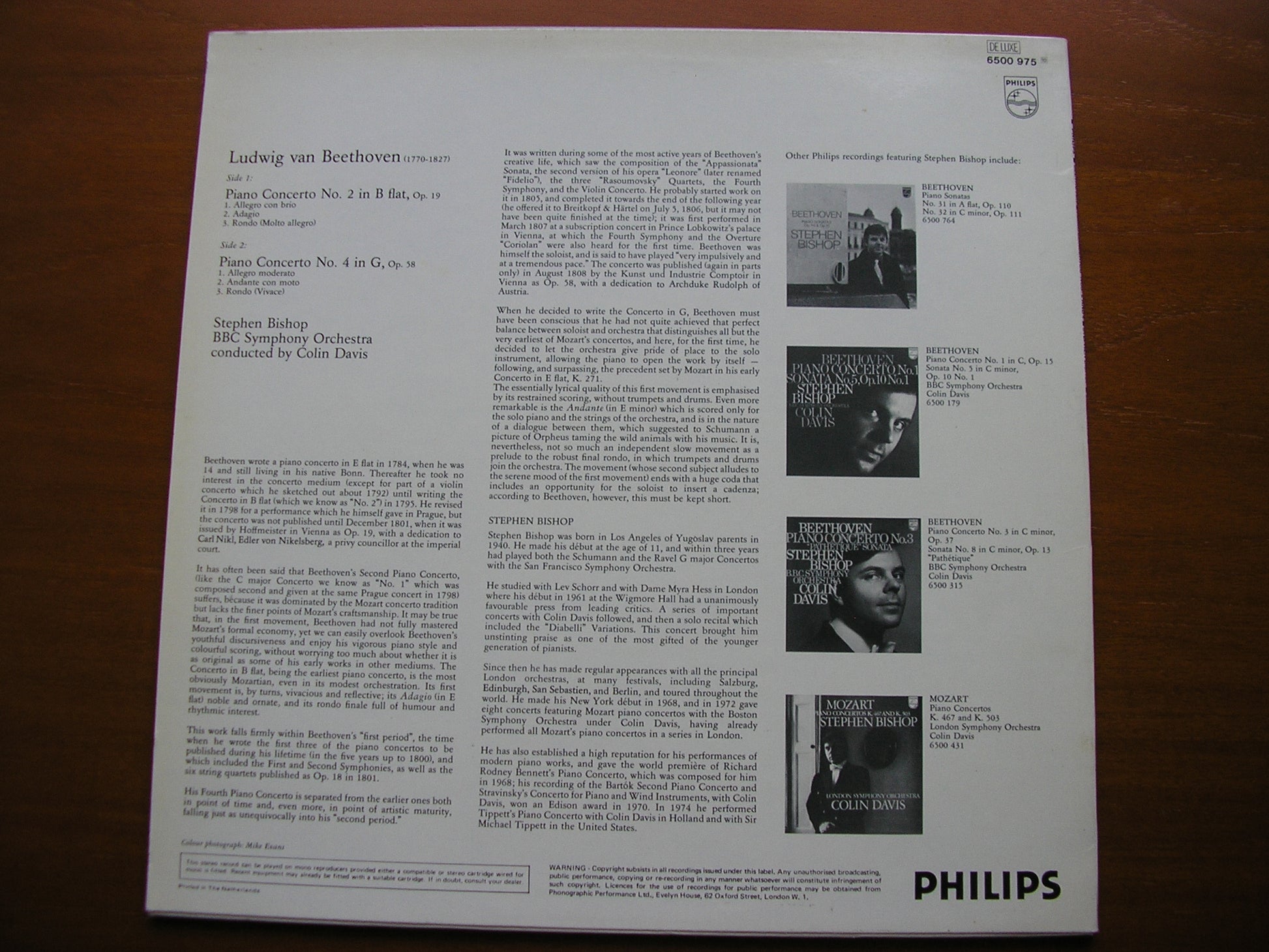 6500 975  BBETHOVEN: PIANO CONCERTOS Nos.2 & 4     STEPHEN BISHOP / BBC SYMPHONY ORCHESTRA / COLIN DAVIS