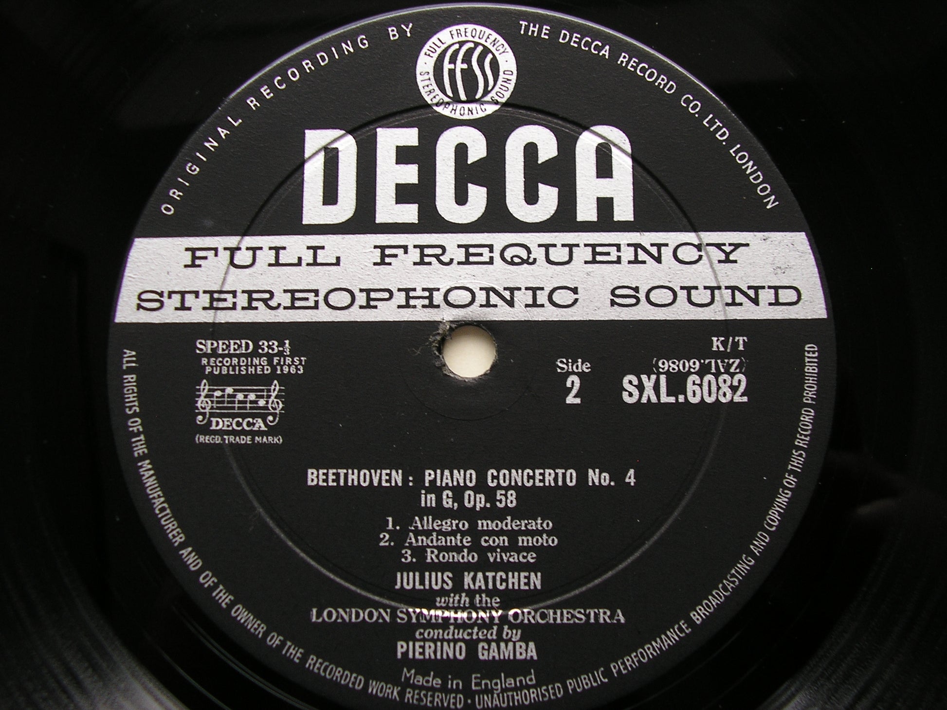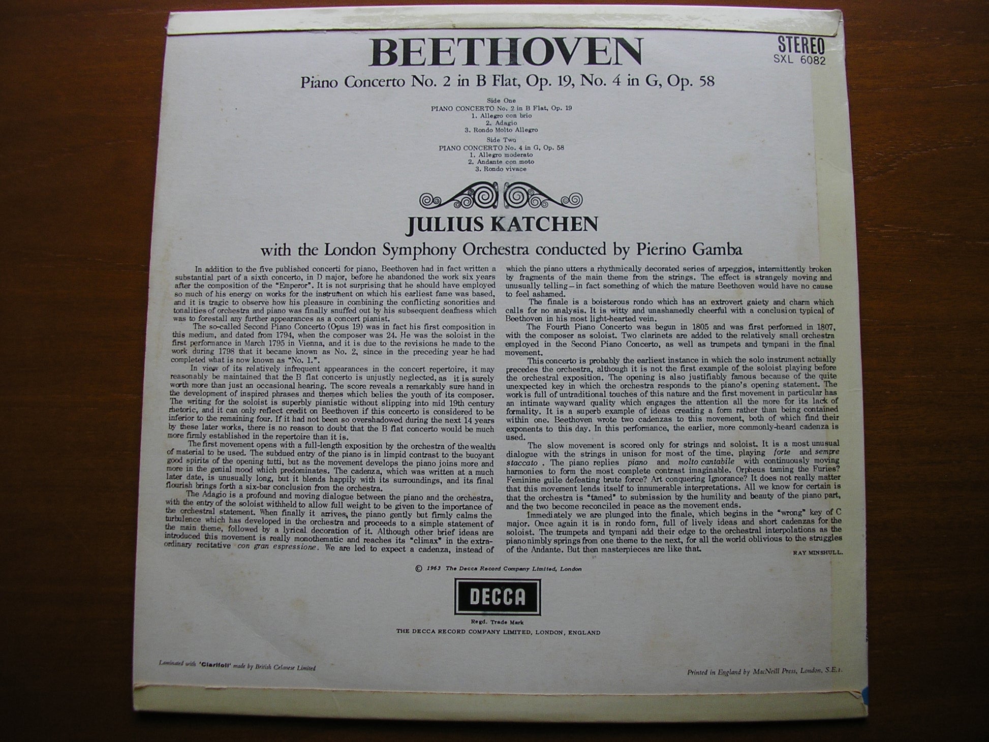 SXL 6082  BEETHOVEN: PIANO CONCERTOS Nos. 2 & 4   JULIUS KATCHEN / LONDON SYMPHONY ORCHESTRA / PIERINO GAMBA