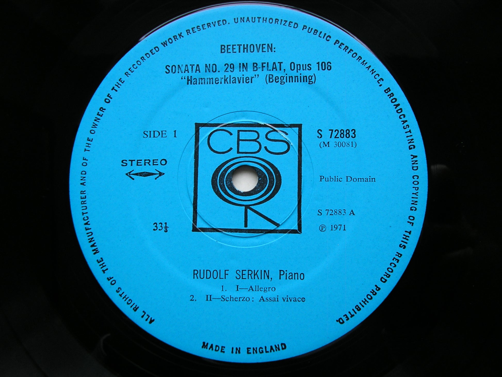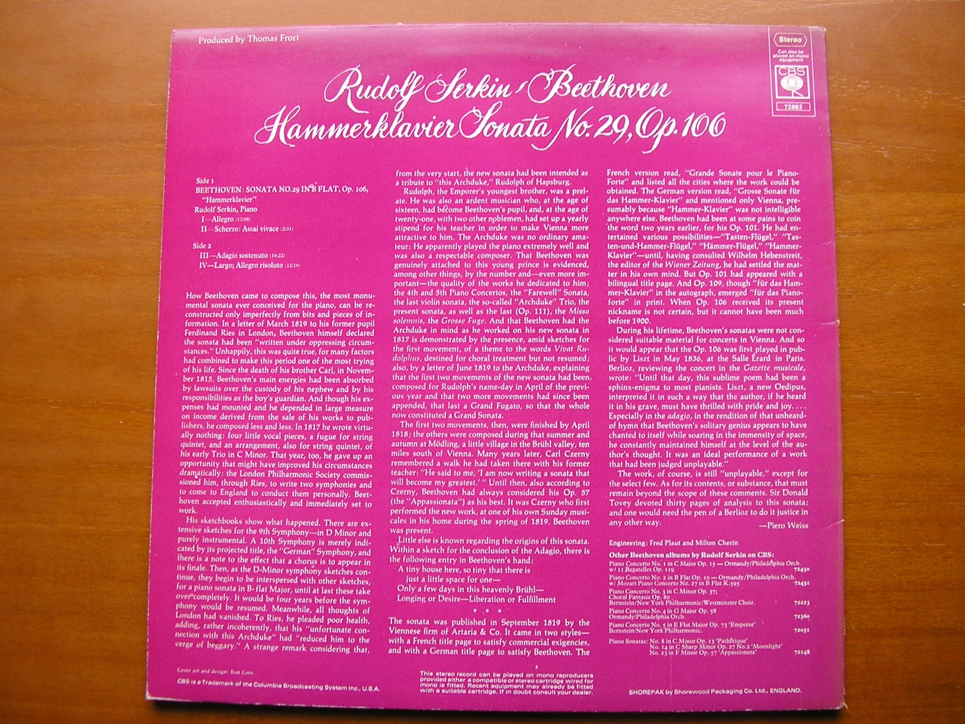 BEETHOVEN: PIANO SONATA No. 29 'Hammerklavier' RUDOLF SERKIN 72883
