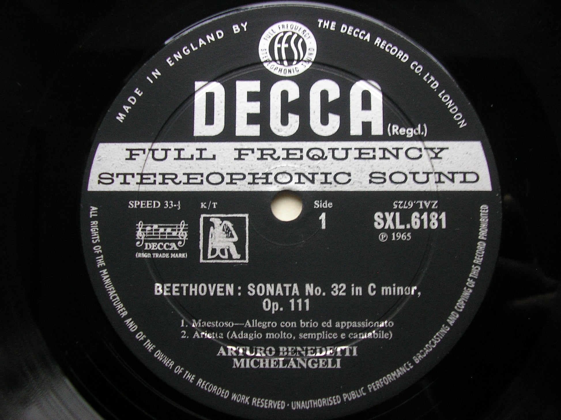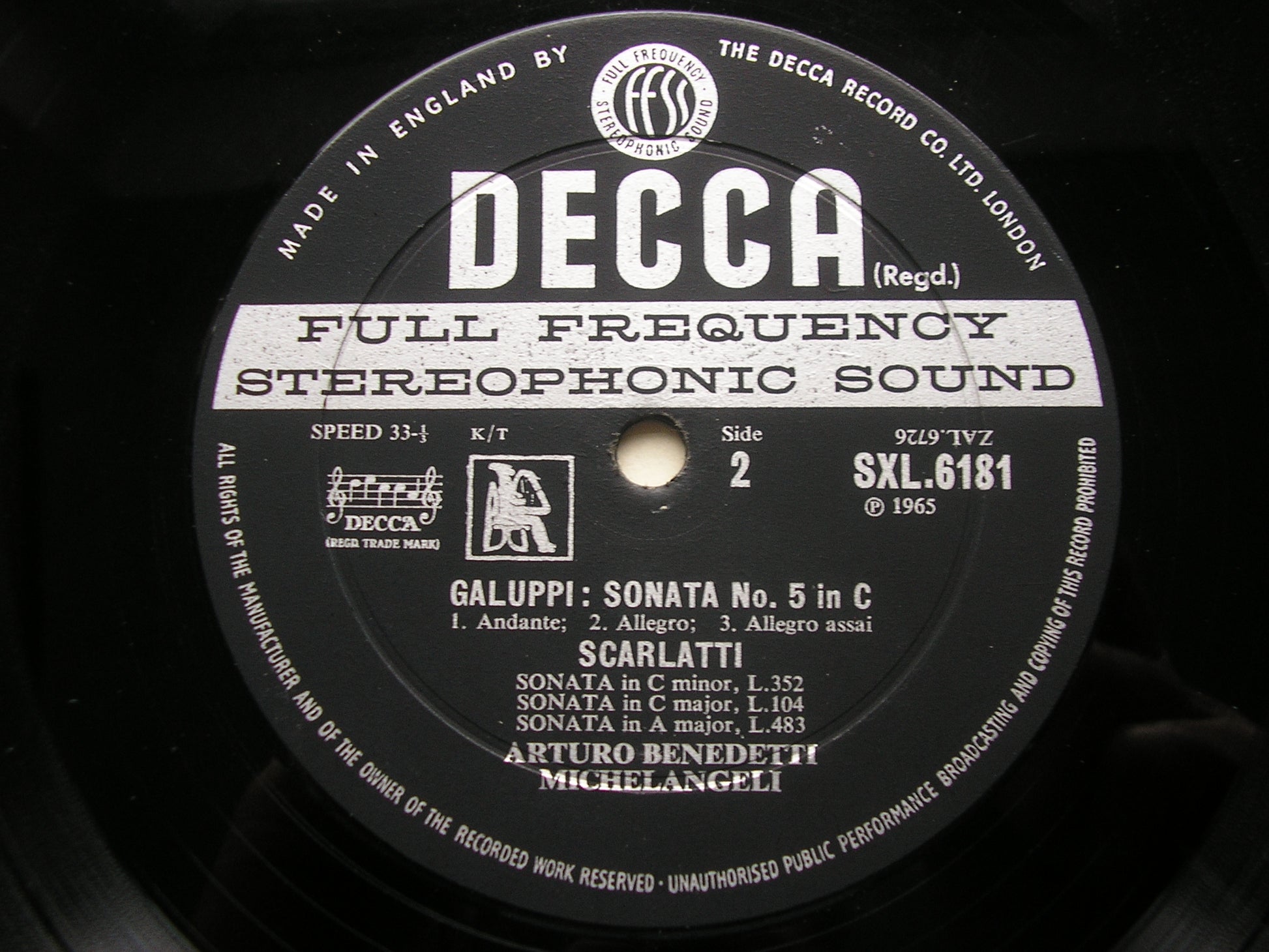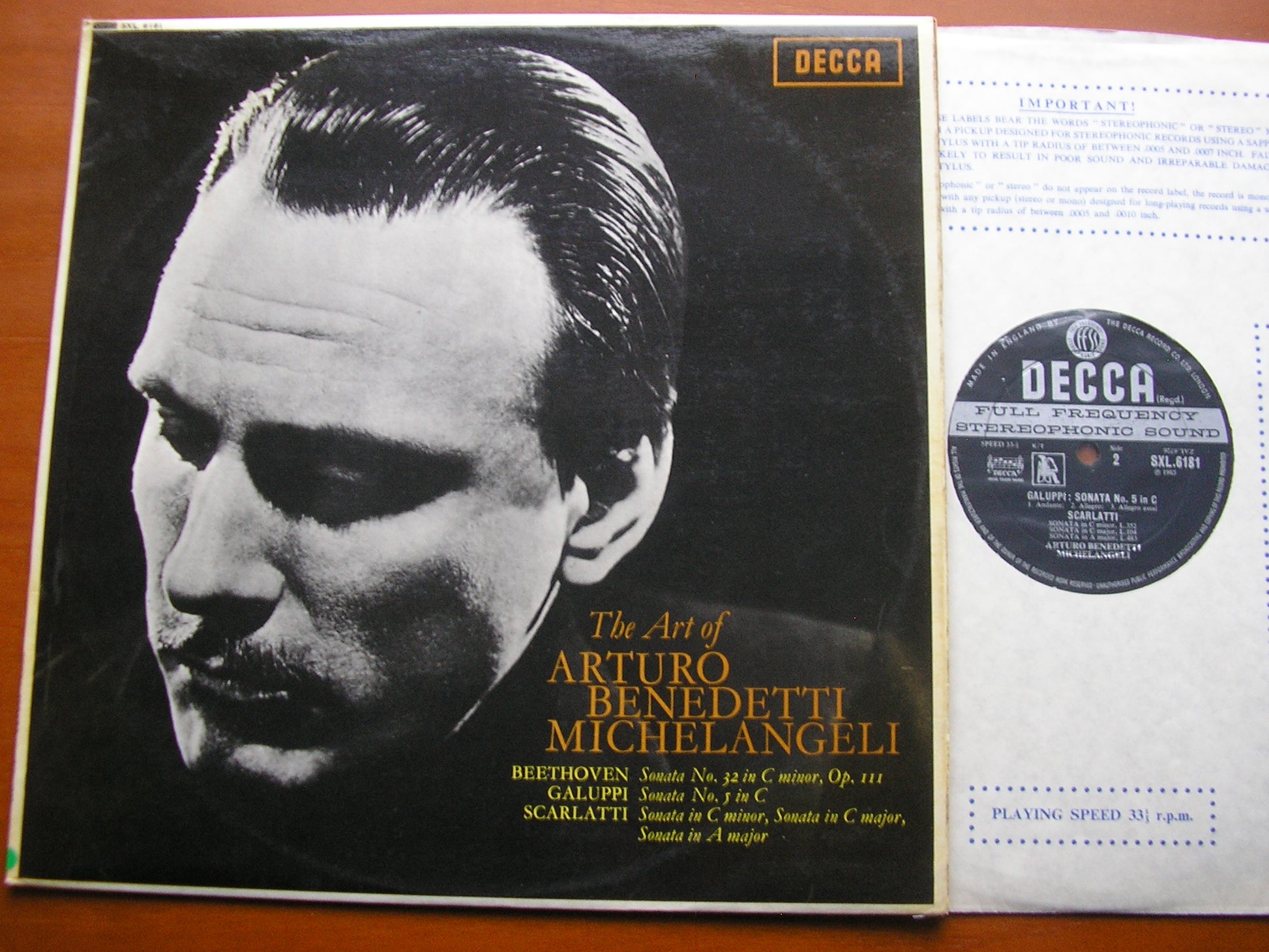 SXL 6181  BEETHOVEN: PIANO SONATA No. 32 / SCARLATTI: 3 SONATAS / GALUPPI: SONATA No. 5      ARTURO BENEDETTI MICHELANGELI