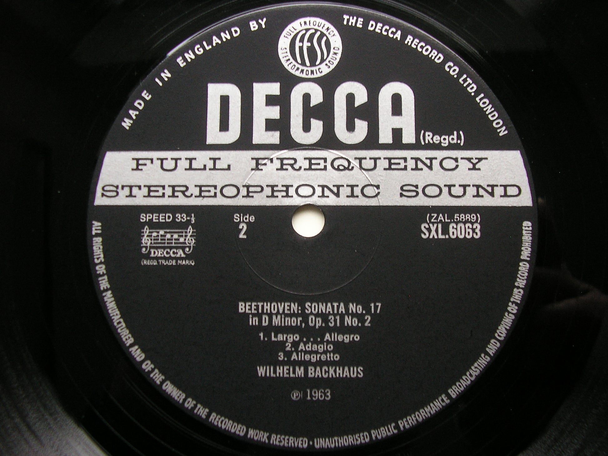SXL 6063  BEETHOVEN: PIANO SONATAS Nos. 17 & 28      WILHELM BACKHAUS