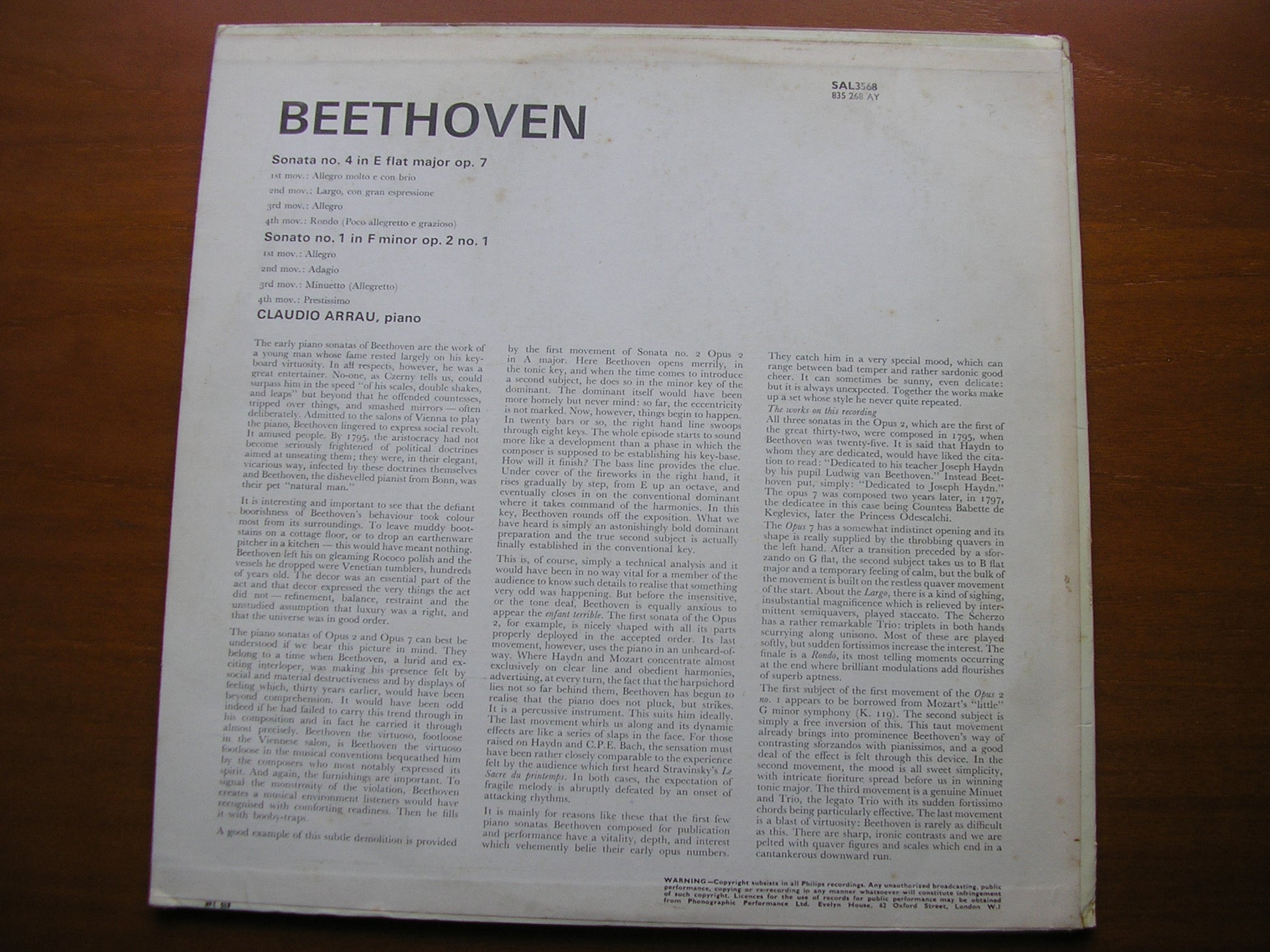 SAL 3568  BEETHOVEN: PIANO SONATAS Nos. 1 & 4      CLAUDIO ARRAU