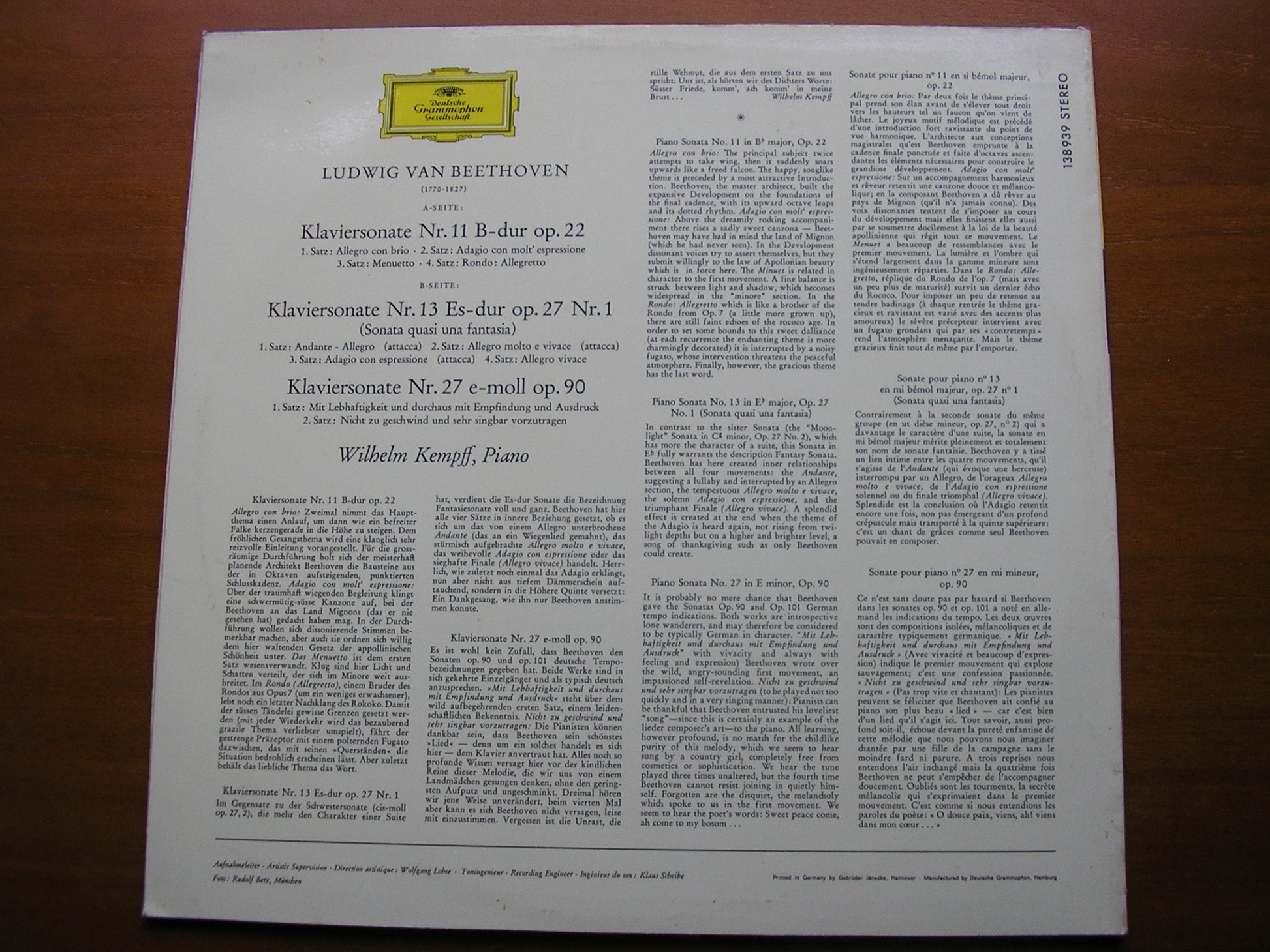 138 939  BEETHOVEN: PIANO SONATAS Nos. 11 / 13 / 27      WILHELM KEMPFF