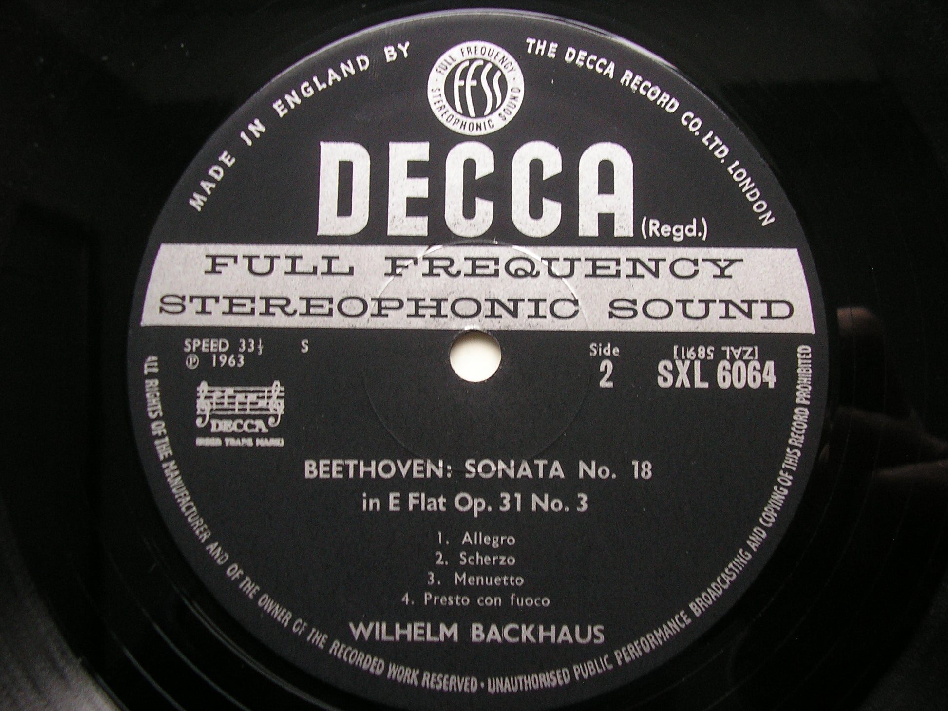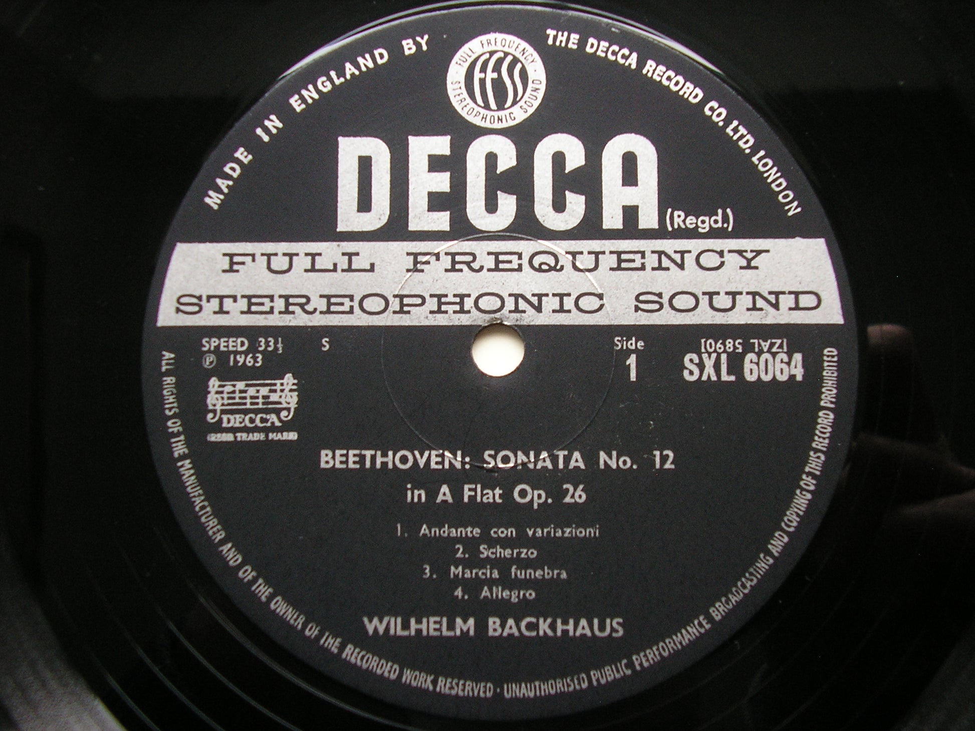 SXL 6064  BEETHOVEN: PIANO SONATAS Nos. 12 & 18      WILHELM BACKHAUS