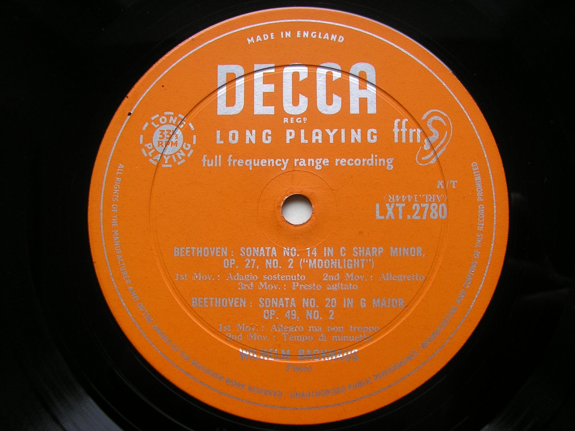 LXT 2780  BEETHOVEN: PIANO SONATAS Nos. 13 / 14 / 19 / 20    WILHELM BACKHAUS