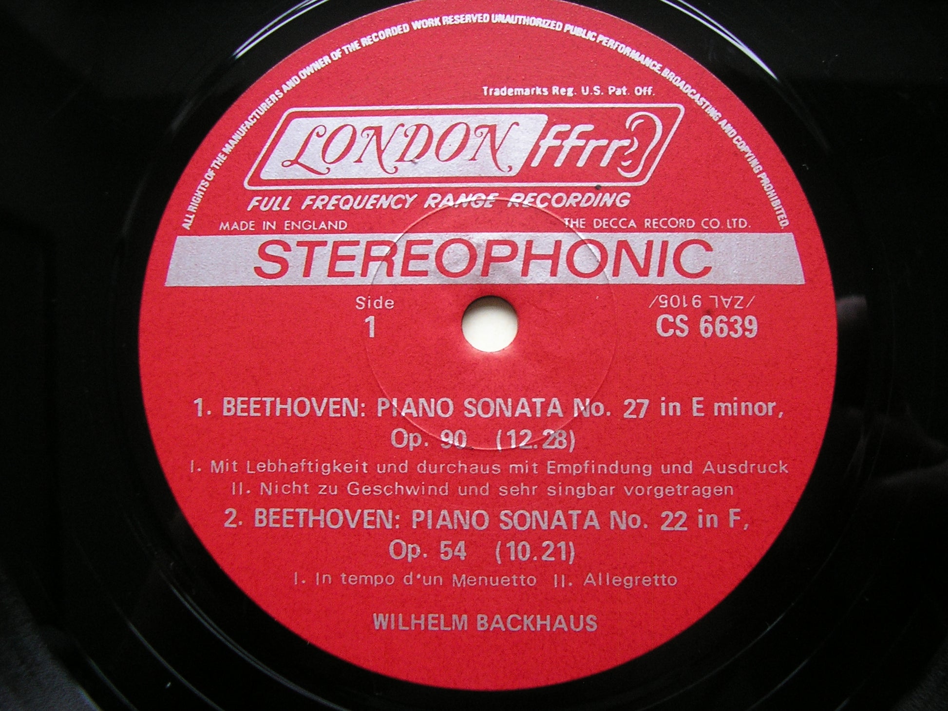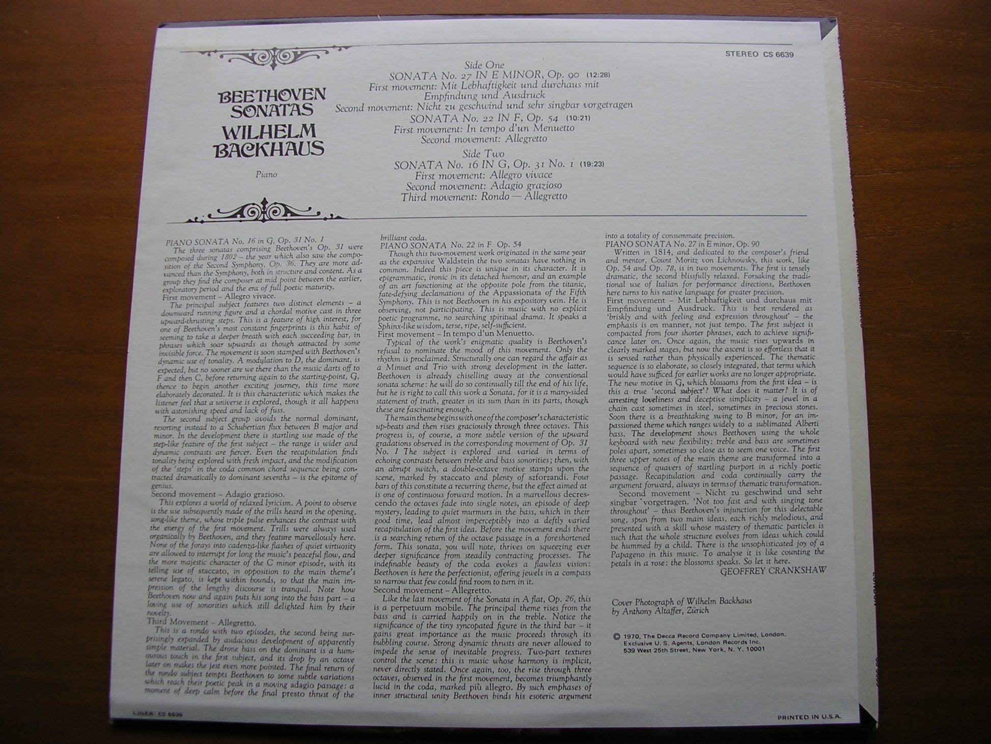 CS 6639  BEETHOVEN: PIANO SONATAS Nos. 16 / 22 / 27      WILHELM BACKHAUS
