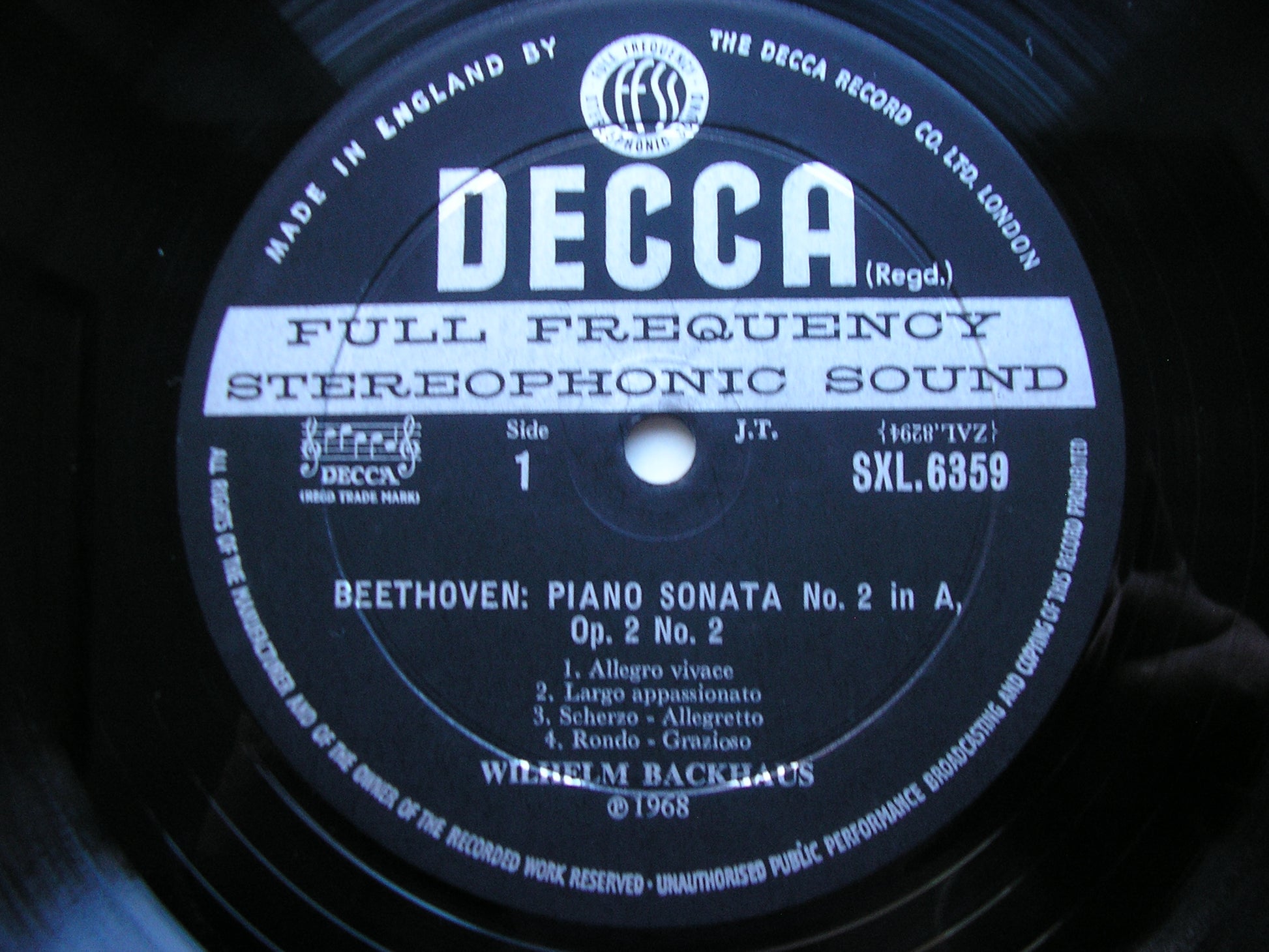 SXL 6359  BEETHOVEN: PIANO SONATAS Nos. 2 / 10 / 19     WILHELM BACKHAUS