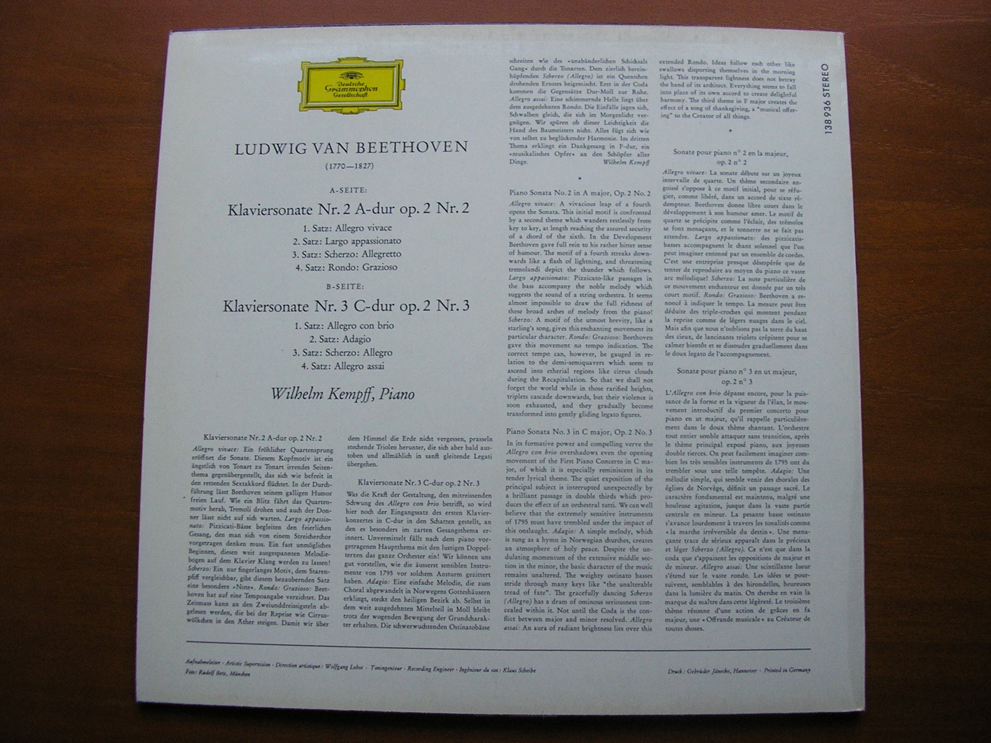 138 936  BEETHOVEN: PIANO SONATAS Nos. 2 & 3     WILHELM KEMPFF