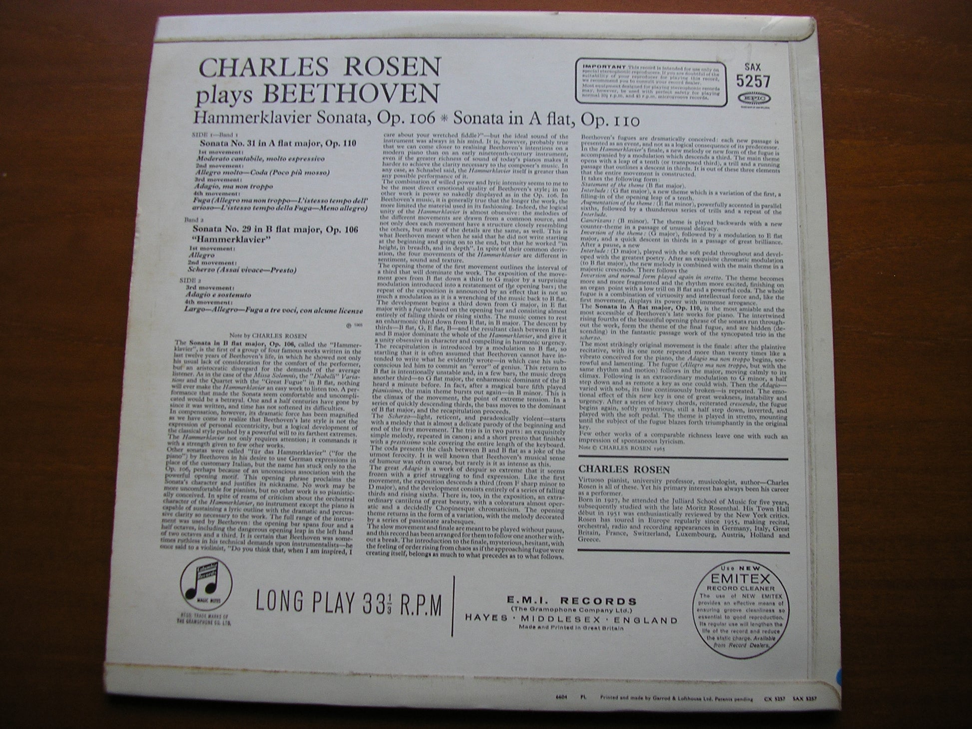 SAX 5257 BEETHOVEN: PIANO SONATAS Nos. 29 'Hammerklavier' & 31 CHARLES ROSEN