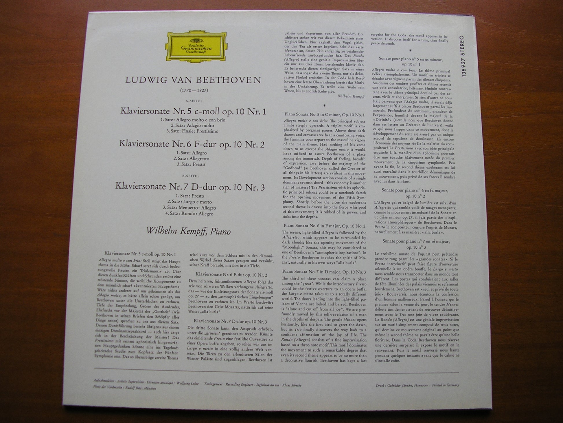 138 937  BEETHOVEN: PIANO SONATAS Nos. 5 / 6 / 7       WILHELM KEMPFF