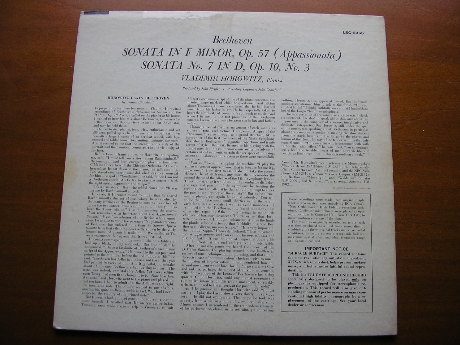 LSC 2366  BEETHOVEN: PIANO SONATAS Nos. 7 & 23     VLADIMIR HOROWITZ