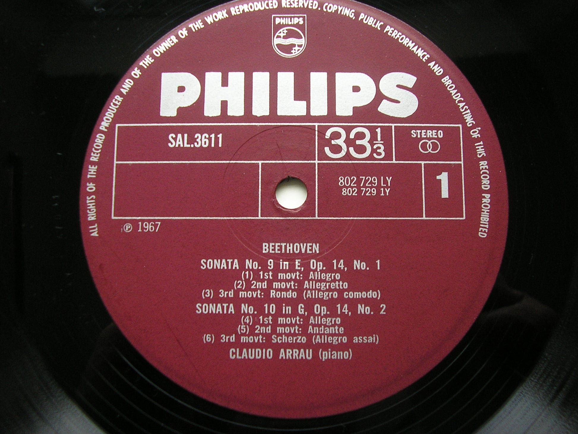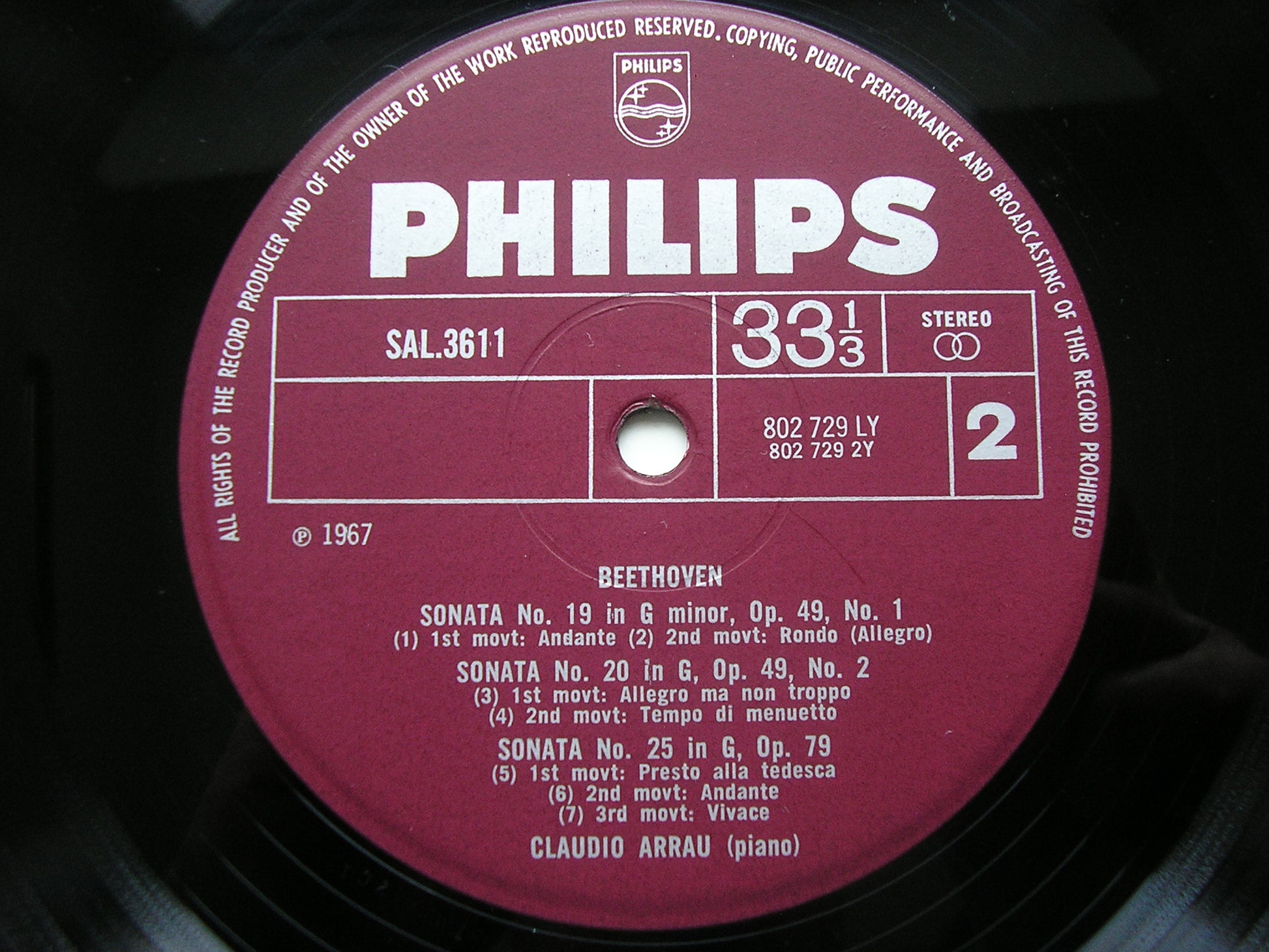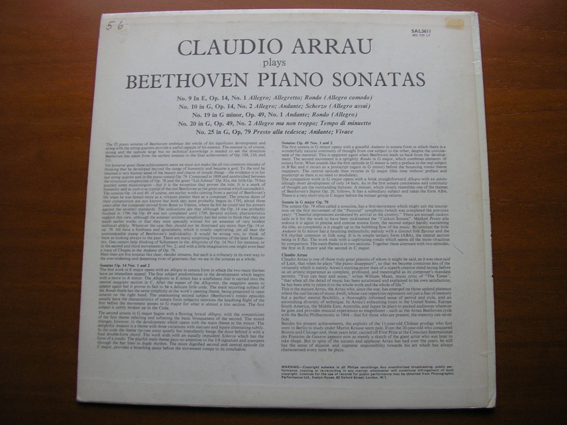 SAL 3611  BEETHOVEN: PIANO SONATAS Nos. 9 / 10 / 19 / 20 / 25      CLAUDIO ARRAU