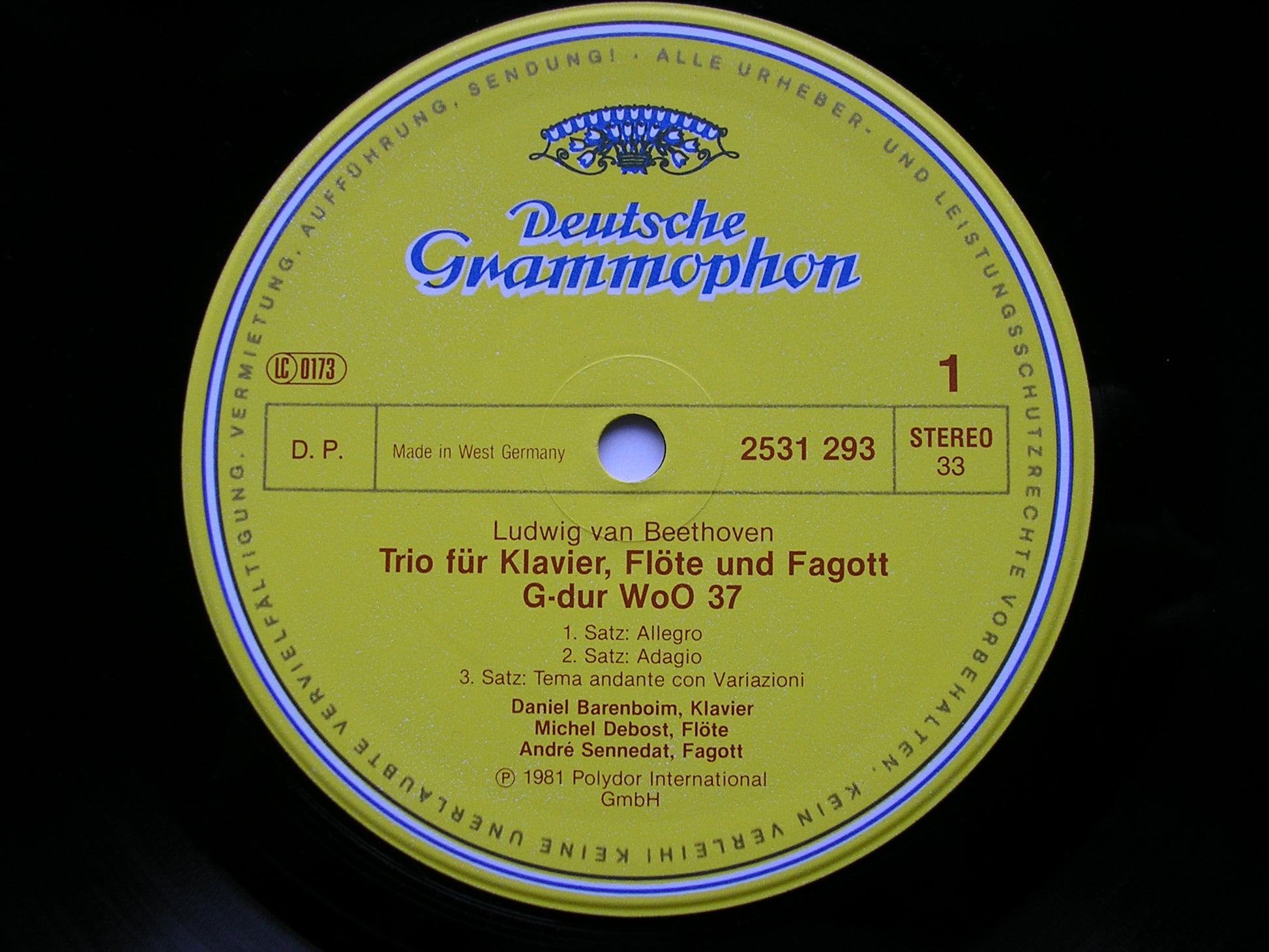 2531 293  BEETHOVEN: SONATA FOR PIANO & HORN Op. 17 / TRIO FOR PIANO, FLUTE & BASSOON in G     DANIEL BARENBOIM / MICHEL DEBOST / ANDRE SENNEDAT / MYRON BLOOM