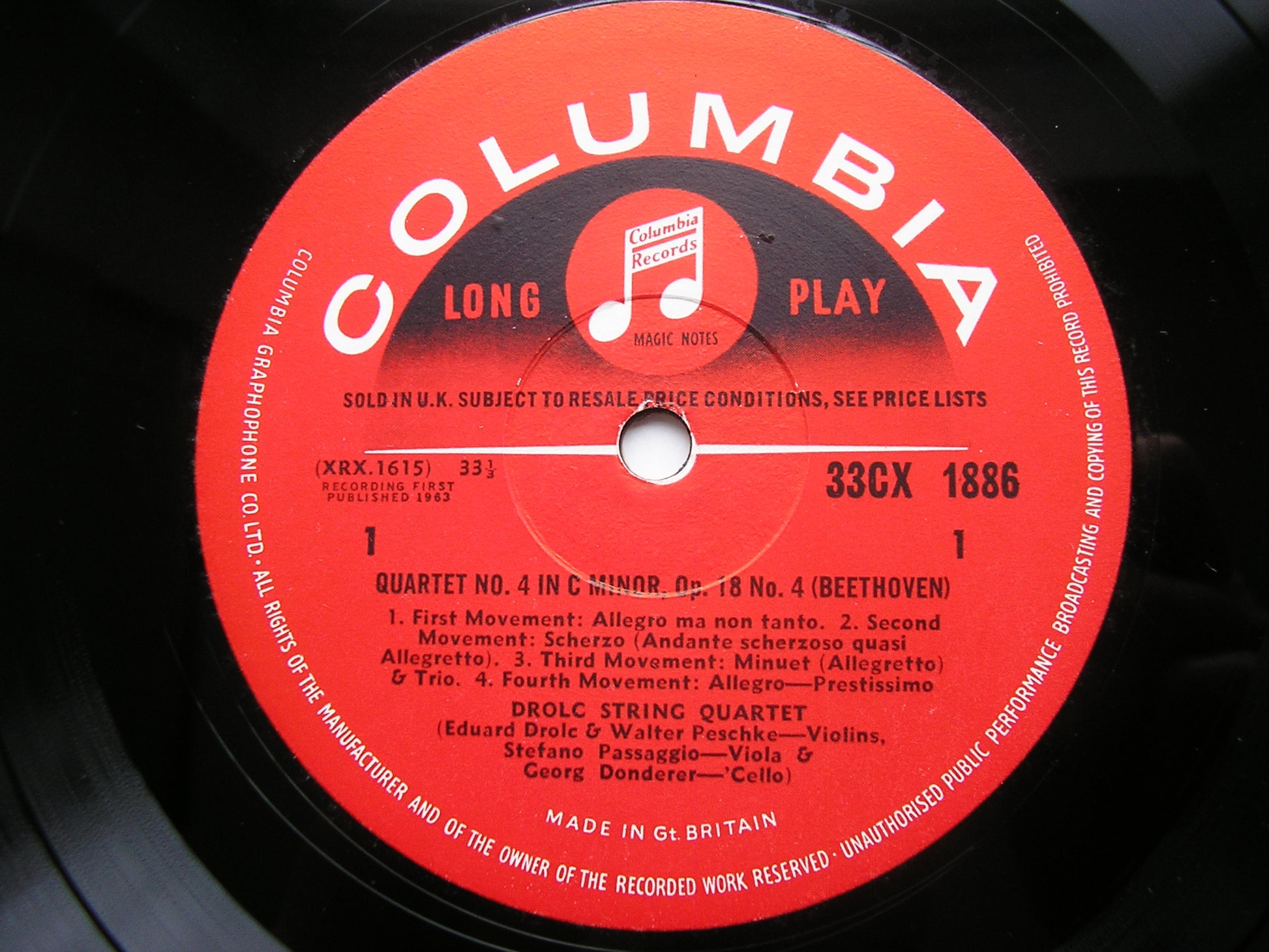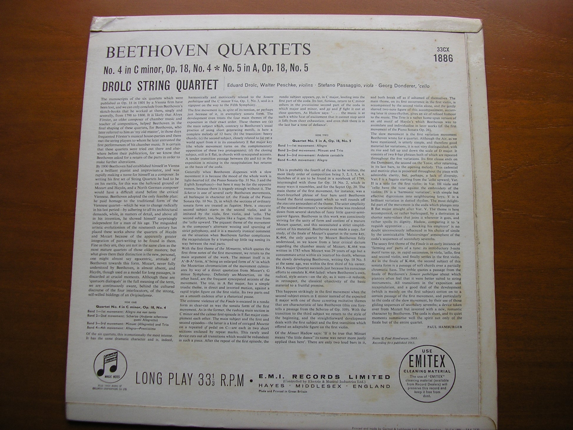 33CX 1886  BEETHOVEN: STRING QUARTET No. 4 Op. 18 / STRING QUARTET No. 5 Op. 18  DROLC QUARTET